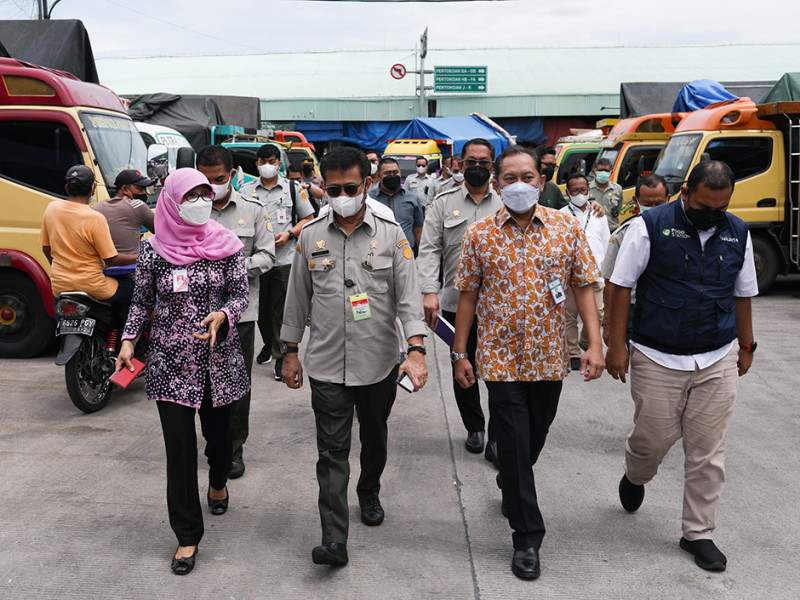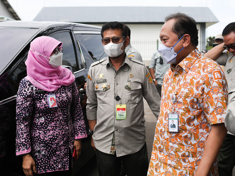 Menteri Pertanian, Syahrul Yasin Limpo, mengecek ketersediaan stok beras di Pasar Induk Beras Cipinang (PIBC), Jakarta Timur, Kamis (28/4). Direktur Utama PT Food Station Tjipinang Jaya (FSTJ), Pamrihadi Wiraryo dan Kepala Dinas KPKP, Suharini Eliawati turut mendampingi kunjungan tersebut. Mentan menyebut PT Food Station Tjipinang Jaya sebagai barometer penyedia bahan pangan strategis di Indonesia. (Foto: Nugroho Sejati/beritajakarta.id)