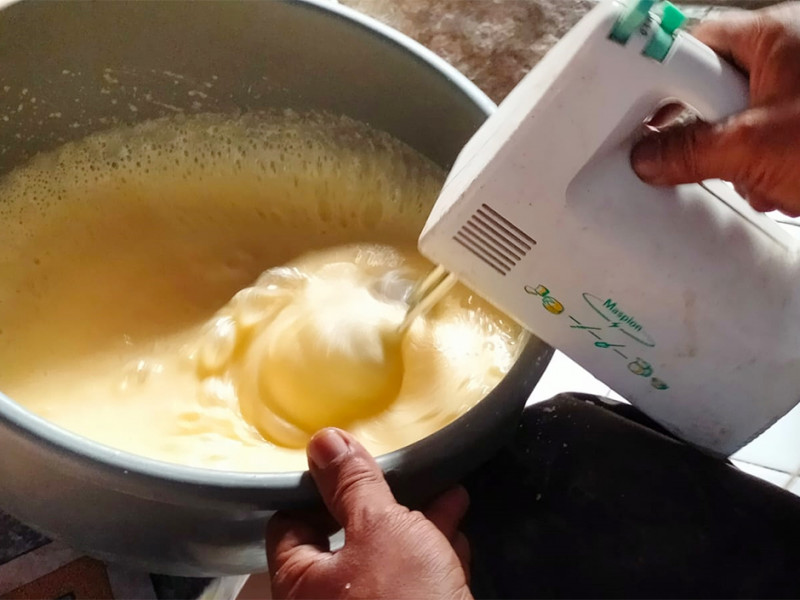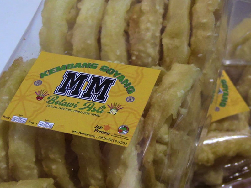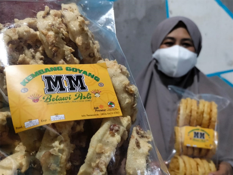 Kembang goyang adalah salah satu kue tradisional khas Betawi yang biasa disajikan saat momen spesial seperti lebaran. Penamanaan kue kering tersebut diambil dari bentuknya yang menyerupai kelopak bunga atau kembang serta proses pembuatannya yang digoyang-goyang hingga adonan terlepas dari cetakan. Ibu Maimunah, anggota Jakpreneur mengaku orderan kue kembang goyang produksinya meningkat hingga 600-700 bungkus jelang Hari Raya Idulfitri dari yang semula hanya sekitar 100-150 bungkus. (Foto: Reza Hapiz/beritajakarta.id)