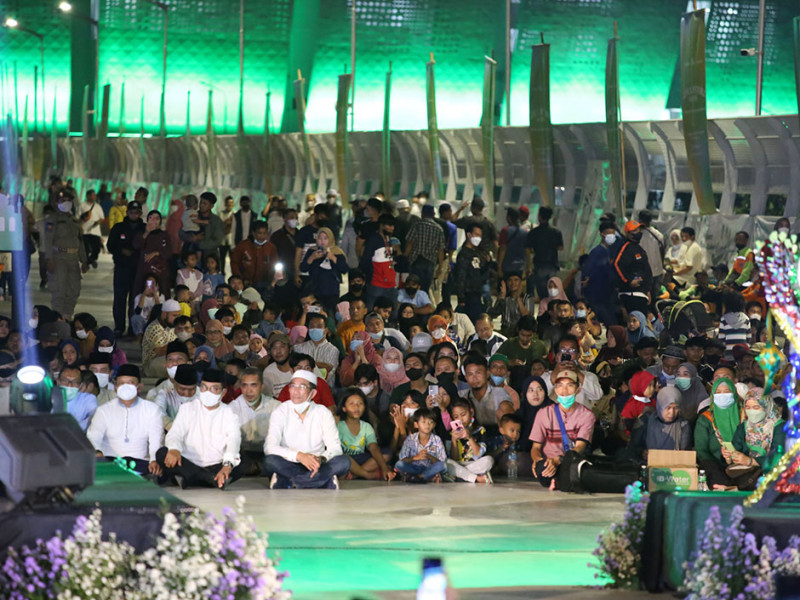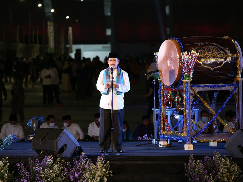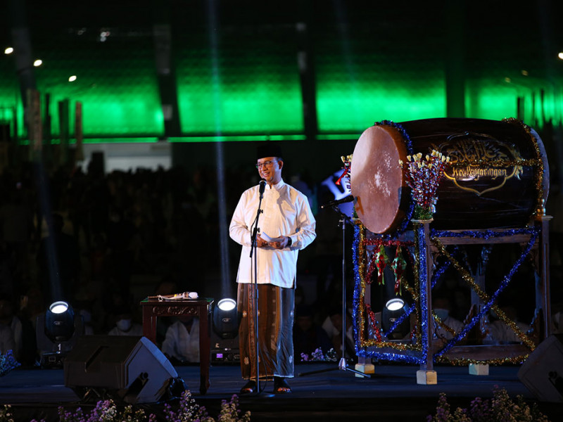 Gubernur DKI Jakarta, Anies Baswedan membuka Festival Malam Takbiran 1443 Hijriah di Jakarta International Stadium (JIS), Papanggo, Tanjung Priok, Jakarta Utara, Minggu (1/5). Festival ini diikuti oleh perwakilan lima wilayah kota dan Kabupaten Kepulauan Seribu. Artis kenamaan juga turut memeriahkan acara ini. (Foto: Mochamad Tresna Suheryanto/beritajakarta.id)