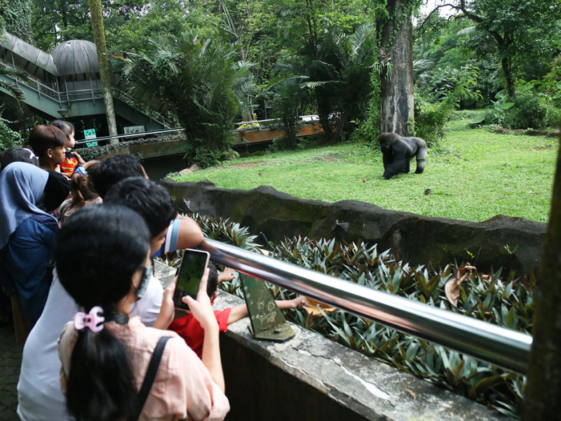 Taman Margasatwa Ragunan (TMR) dipadati puluhan ribu pengunjung, baik yang datang dari dalam kota maupun luar Jakarta, Senin (3/5). Mereka datang menggunakan sepeda motor, mobil dan transportasi publik seperti Transjakarta. Kepala Unit Pengelola (UP) TMR, Endah Rumiyati mengatakan, hingga pukul 14.00 tercatat sudah 29.487 orang masuk ke taman wisata ini yang sebelumnya mendaftar secara online. Harga tiket masuk saat libur Lebaran tetap sama seperti hari-hari biasa. Layanan kunjungan wisata TMR dibuka mulai pukul 07.00 hingga 14.30 WIB. (Foto: Mochamad Tresna Suheryanto/beritajakarta.id)