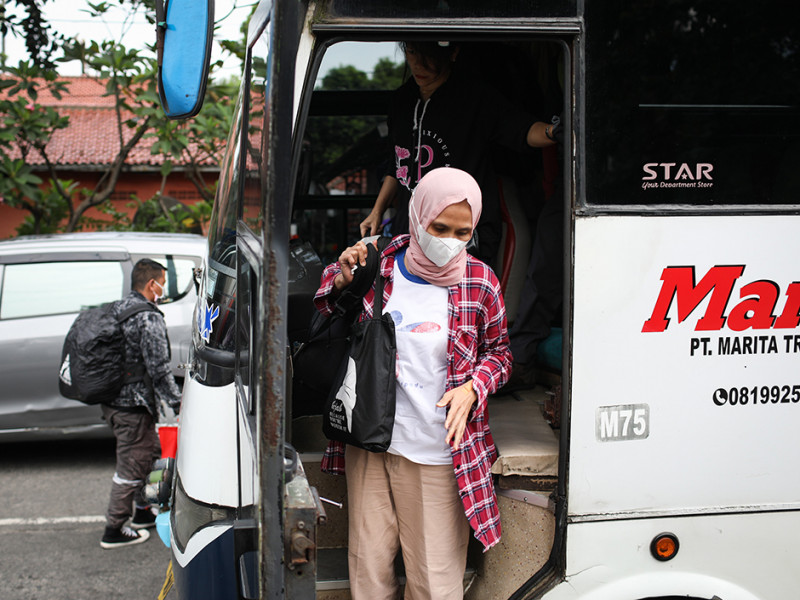 Ribuan Pemudik Tiba di Terminal Kampung Rambutan