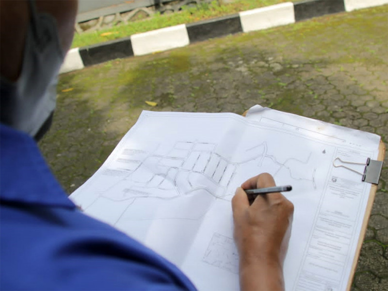 Kelapa Suku Dinas Sumber Daya Air (Sudin SDA) Jakarta Selatan, Mustajab melakukan monitoring rencana pembangunan saluran baru di Jalan Karang Tengah sampai ke Jalan H Nudin, Kelurahan Lebak Bulus, Kecamatan Cilandak, Jakarta Selatan, Selasa (10/5). Rencananya saluran akan dibangun sepanjang 800 meter, lebar satu meter dengan kedalaman 80 sentimeter. (Foto: Reza Hapiz/beritajakarta.id)