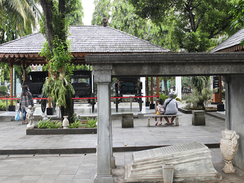 Sejumlah warga mengunjungi Museum Taman Prasasti di Jalan Tanah Abang I, Kelurahan Petojo Selatan, Gambir, Jakarta Pusat, Rabu (11/5). Para pengunjung museum ini akan disuguhkan dengan koleksi prasasti nisan kuno dan kereta jenazah antik. Museum Taman Prasasti buka pada Selasa-Minggu pukul 08:00-16:00 WIB. (Foto: Nugroho Sejati/beritajakarta.id)