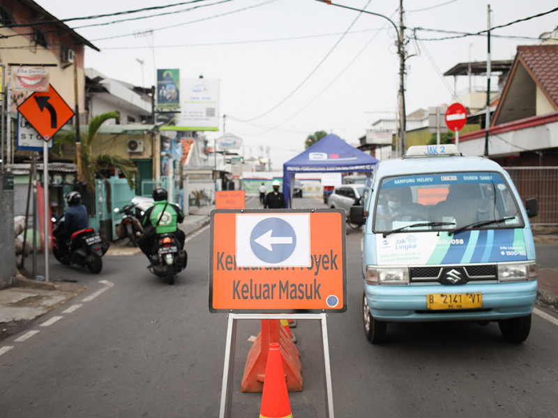 Sejumlah kendaraan diarahkan untuk mengambil jalur alternatif saat melintasi Jalan Otista III, Jatinegara, Jakarta Timur, Rabu (11/5). Dinas Perhubungan (Dishub) DKI Jakarta melakukan rekayasa lalu lintas di jalan tersebut terkait proyek sodetan Kali Ciliwung ke Kanal Banjir Timur (KBT). Rekayasa lalin dilaksanakan dalam dua tahap, yaitu tahap I pada tanggal 9 Mei 2022 sampai 17 September 2022 dan tahap II yang dimulai tanggal 27 Desember 2022 sampai 25 April 2023. (Foto: Nugroho Sejati/beritajakarta.id)