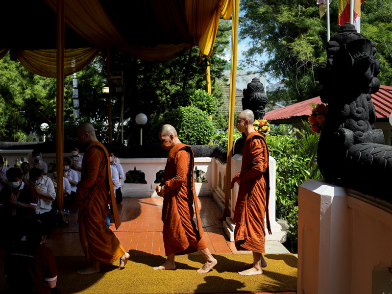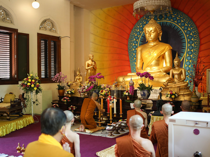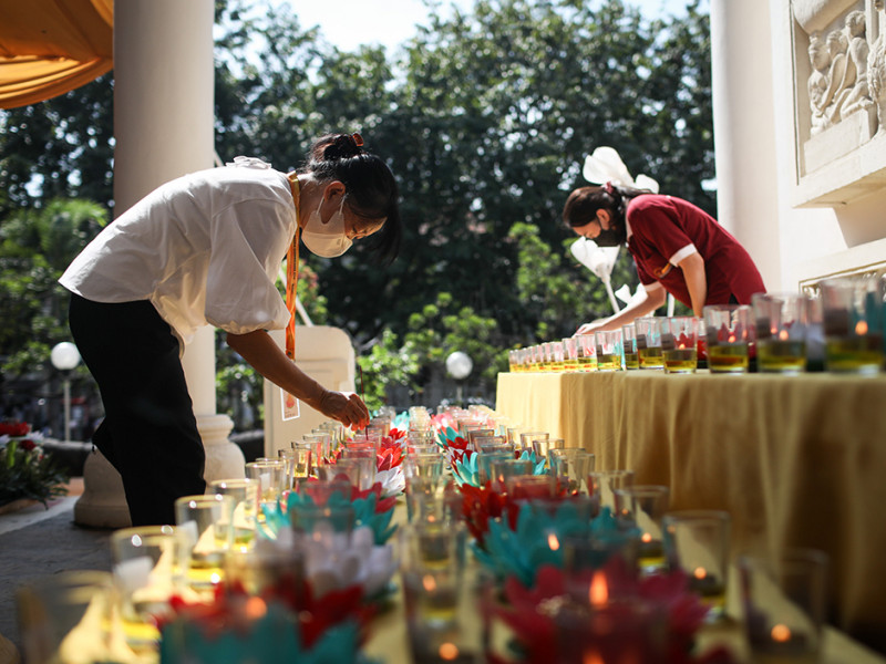 Umat Buddha melaksanakan ibadah pada Hari Raya Trisuci Waisak 2566 BE di Vihara Dhammacakka Jaya, Sunter, Jakarta Utara, Senin (16/5). Pada tahun ini, Vihara Dhammacakka Jaya kembali melaksanakan Ibadah Trisuci Waisak secara offline dengan tetap menerapkan protokol kesehatan. Waisak merupakan hari suci agama Buddha yang memperingati tiga peristiwa penting, yaitu kelahiran Pangeran Siddharta, Pangeran Siddharta mencapai penerangan agung menjadi Buddha, dan wafatnya Buddha Gautama. (Foto: Nugroho Sejati/beritajakarta.id)