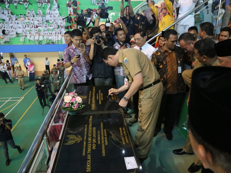 Gubernur DKI Jakarta, Basuki Tjahaja Purnama meresmikan Gedung STIKES dan GOR Yayasan Pondok Karya Pembangunan, di Jalan Raya PKP, Kelurahan Kelapa Dua Wetan, Kelurahan Ciracas, Jakarta Timur, Rabu (08/04/2015). (Foto: Yopie/Beritajakarta.com)