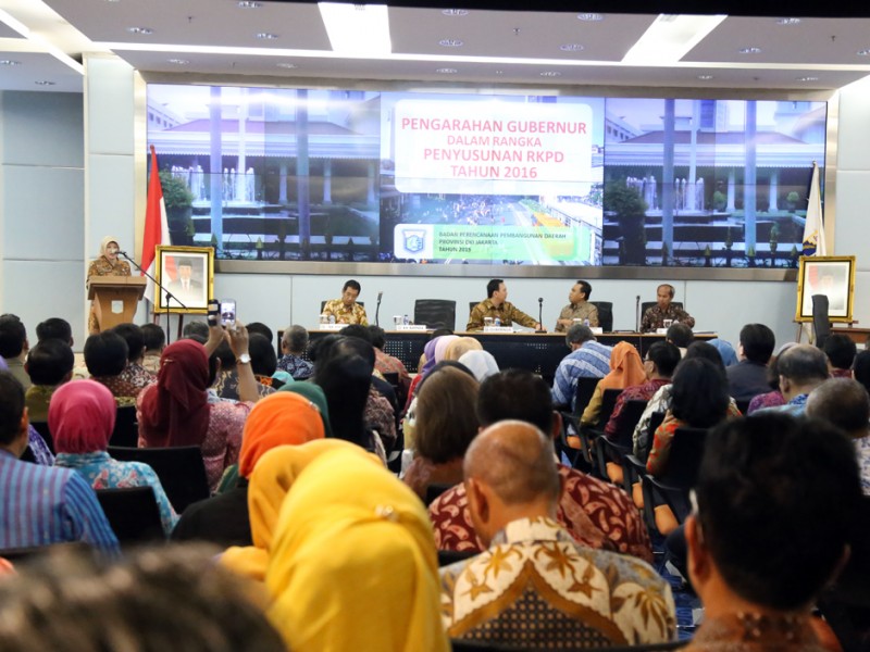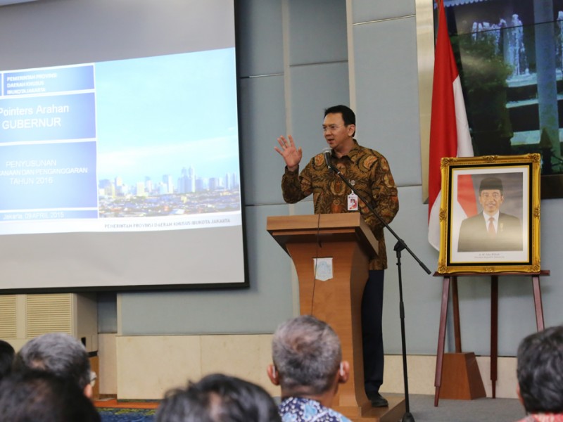 Gubernur DKI Jakarta, Basuki Tjahaja Purnama memberikan pengarahan kepada jajaran SKPD dan UKPD terkait penyusunan Rencana Kerja Pemerintah Daerah (RPKD) Tahun 2016. Pengarahan berlangsung di Balaikota DKI Jakarta, Jalan Medan Merdeka Selatan, Gambir, Jakarta Pusat, Kamis (09/04/2015). (Foto : Yopie/Beritajakarta.com)