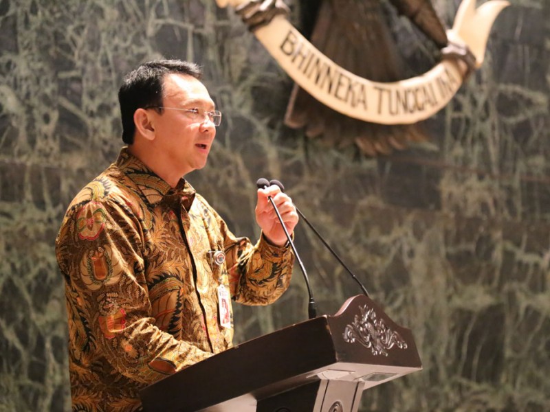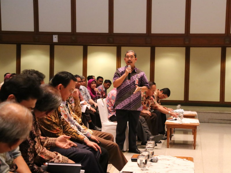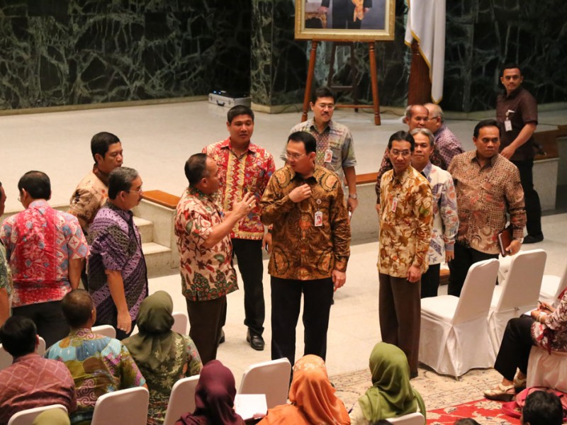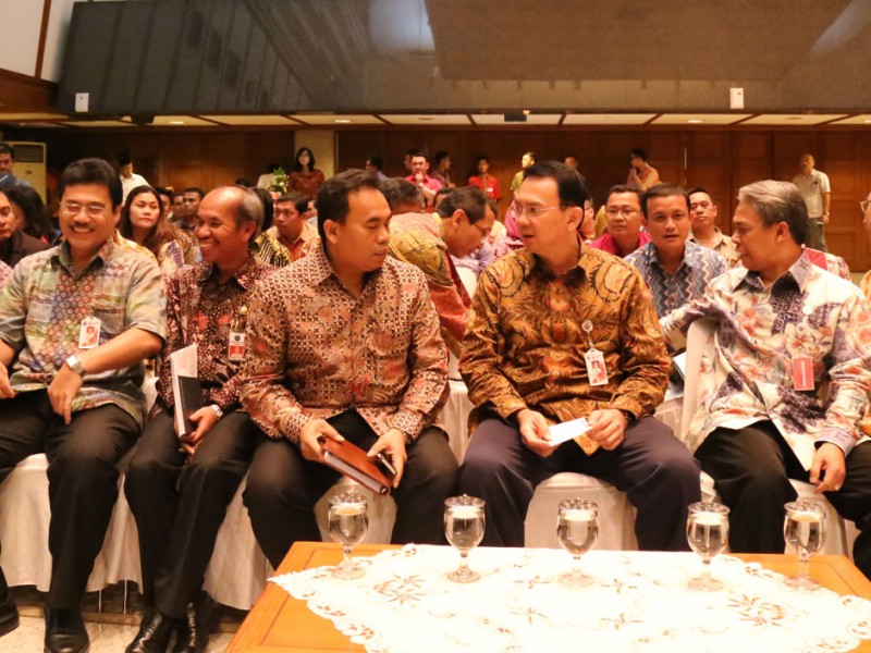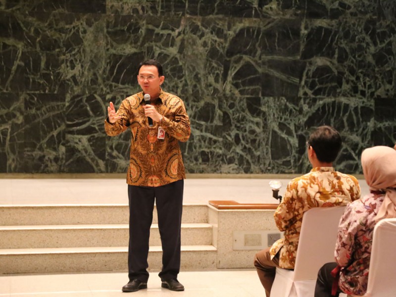 Gubernur DKI Jakarta, Basuki Tjahaja Purnama memberikan pengarahan kepada Kepala Satuan Pelaksana Pelayanan Terpadu Satu Pintu (Kasatlak PTSP), di Balaikota DKI Jakarta, Kamis (09/04/2015). Selain Kasatlak PTSP, pengarahan juga diberikan kepada Walikota, Bupati serta Camat dari 5 wilayah Kota dan Kabupaten Administrasi Kepulauan Seribu. (Foto : Yopie/Beritajakarta.com)