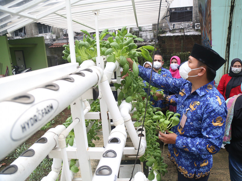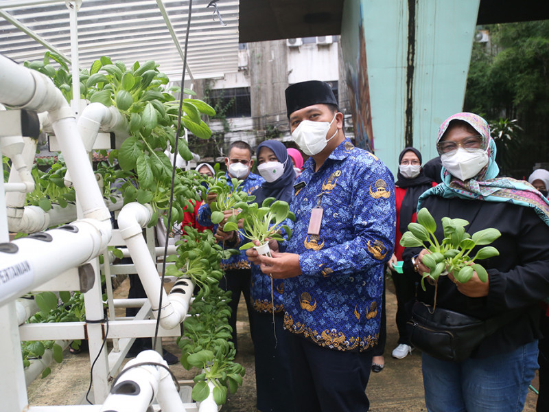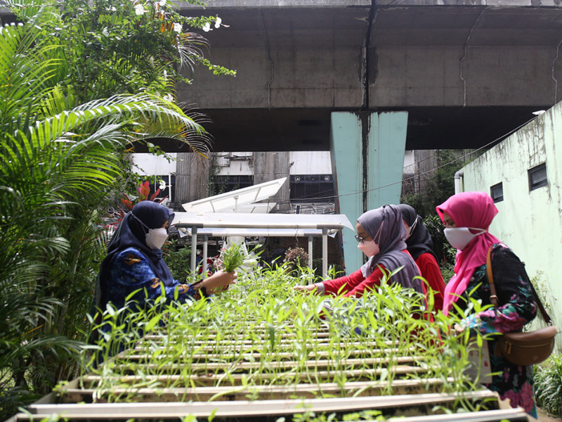 Sebanyak tiga kilogram pakcoy serta 1,5 kilogram kangkung dan 100 gram bunga rosela berhasil dipanen dari RPTRA Gondangdia, Menteng, Jakarta Pusat, Jumat (20/5). Penanaman sayuran dan rosela ini merupakan pengembangan urban farming dengan memanfaatkan keterbatasan lahan. (Foto: Mochamad Tresna Suheryanto/beritajakarta.id)