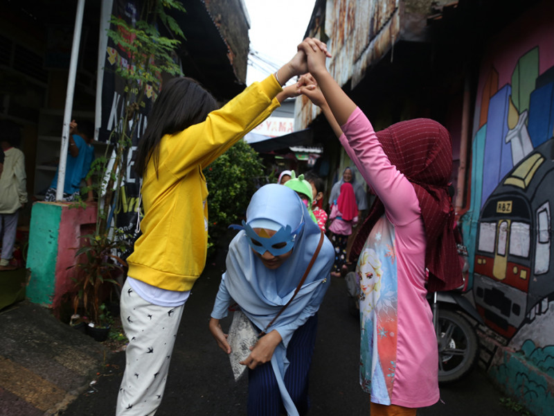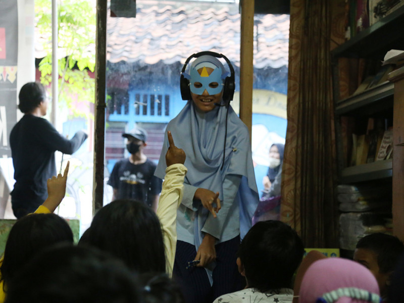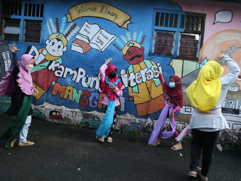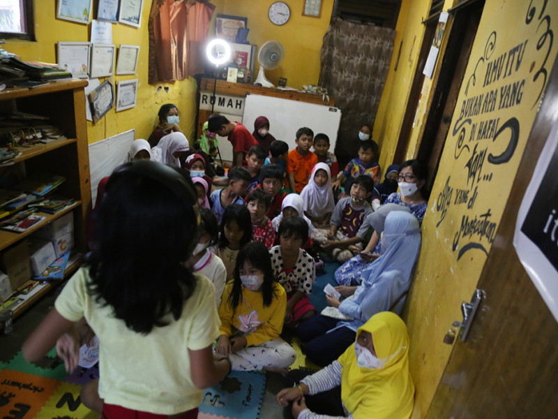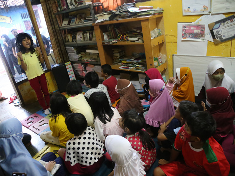 Kampung Literasi Manggarai bekerjasama dengan karang taruna kelurahan setempat menyelenggarakan pentas dongeng dan menari di Rumah Baca Zhaffa, Jalan Menara Air VII, Manggarai, Tebet, Jakarta Selatan, Jumat (20/5). Pentas ini diramaikan dua pendongeng cilik Olivia Karenina S dan Hanna Ameera serta pertunjukkan seni tari dari sanggar Zhaffa. (Foto: Reza Hapiz/beritajakarta.id)
