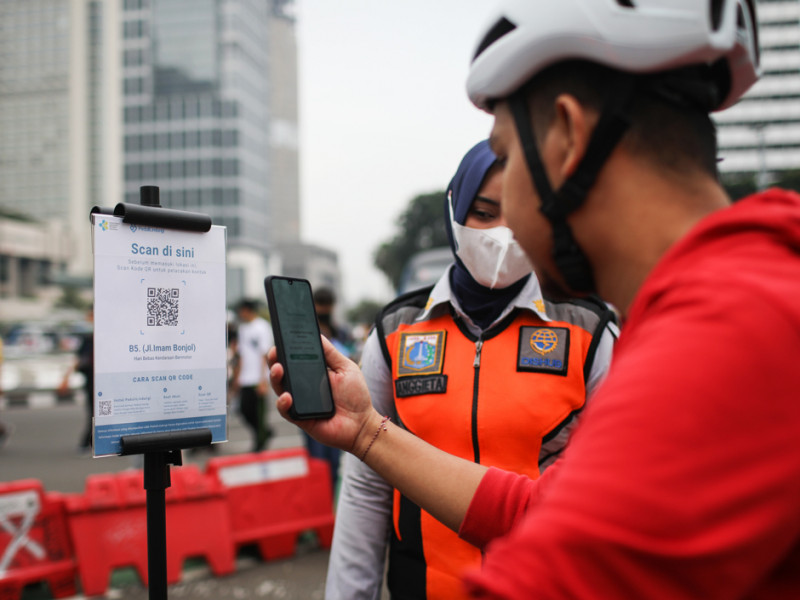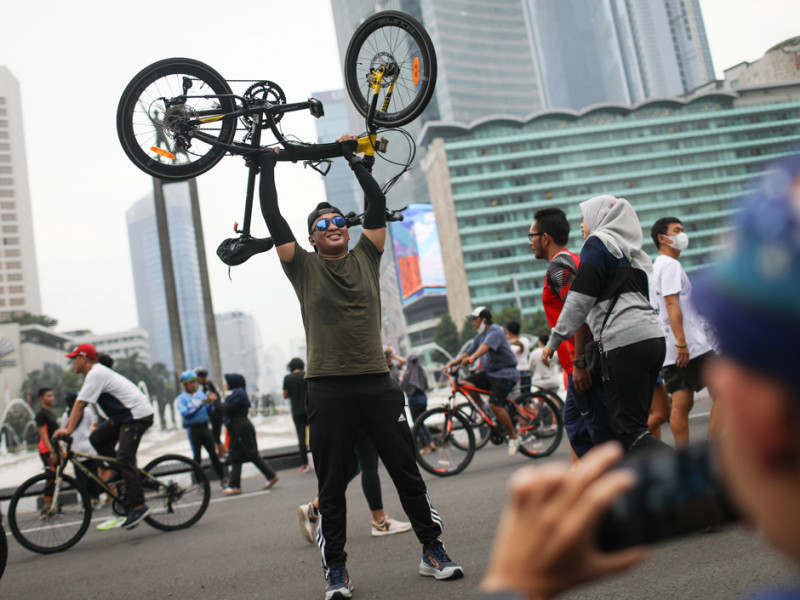 Pemerintah Provinsi (Pemprov) DKI Jakarta kembali menggelar Hari Bebas Kendaraan Bermotor (HBKB) terbatas di lima wilayah kota, Minggu (22/5). Pelaksanaan HBKB terbatas ini sangat disambut antusias warga. (Foto: Nugroho Sejati/beritajakarta.id)