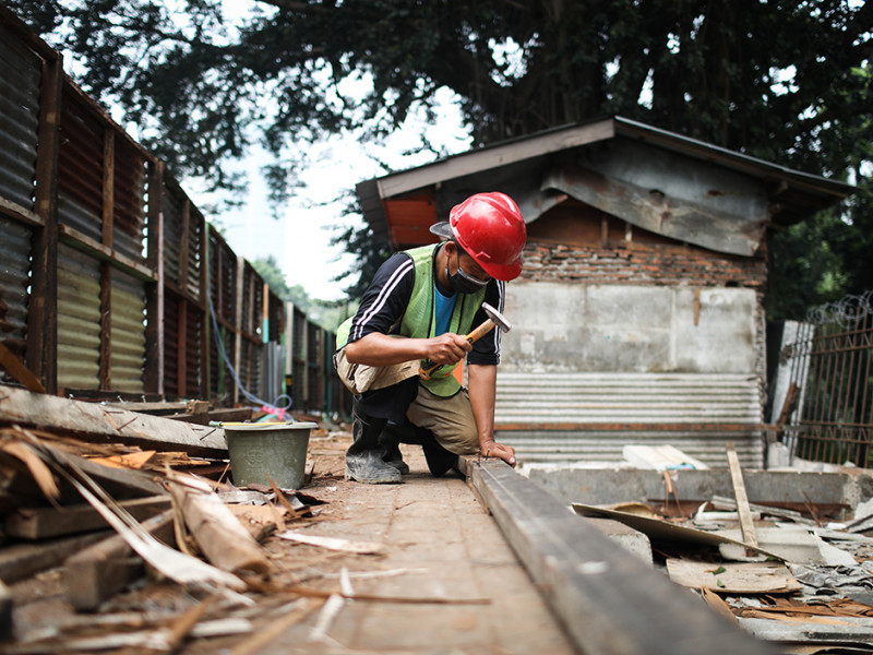 Proyek revitalisasi Pasar Hewan Barito Pasar Hewan Barito di Jalan Barito I, Kebayoran Baru, Jakarta Selatan terus dikebut. Suku Dinas Perindustrian, Perdagangan, Koperasi, Usaha Kecil dan Menengah (Sudin PPKUKM) Jakarta Selatan menargetkan revitalisasi akan selesai dalam waktu tiga bulan ke depan. (Foto: Nugroho Sejati/beritajakarta.id)