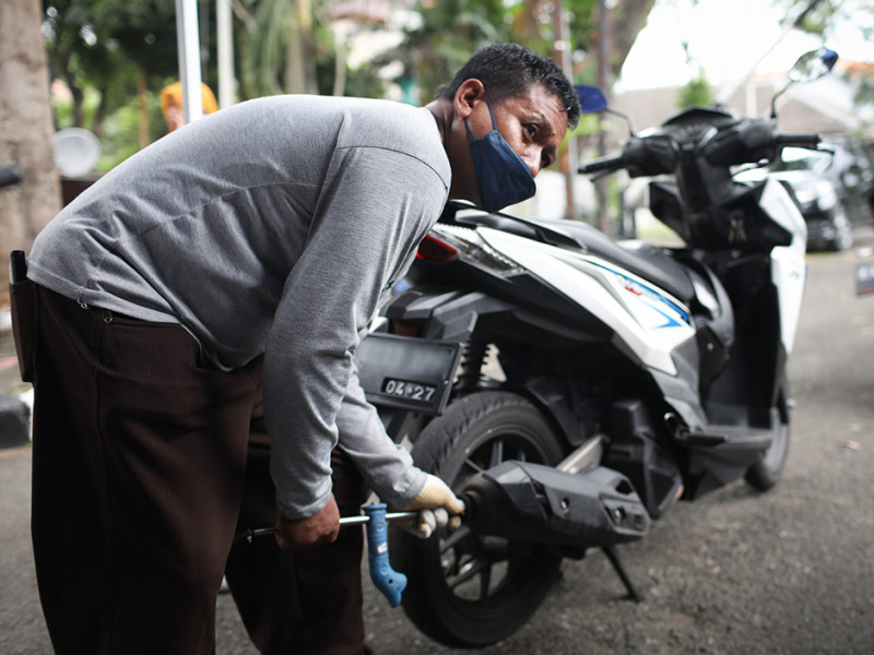 Ratusan Pemotor Ikuti Uji Emisi Gratis di Kebayoran Baru