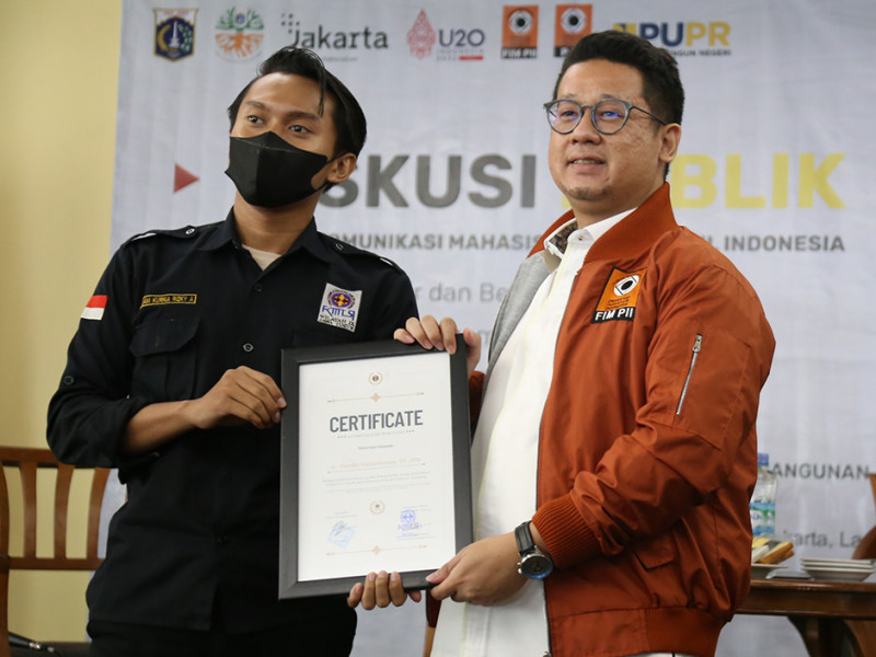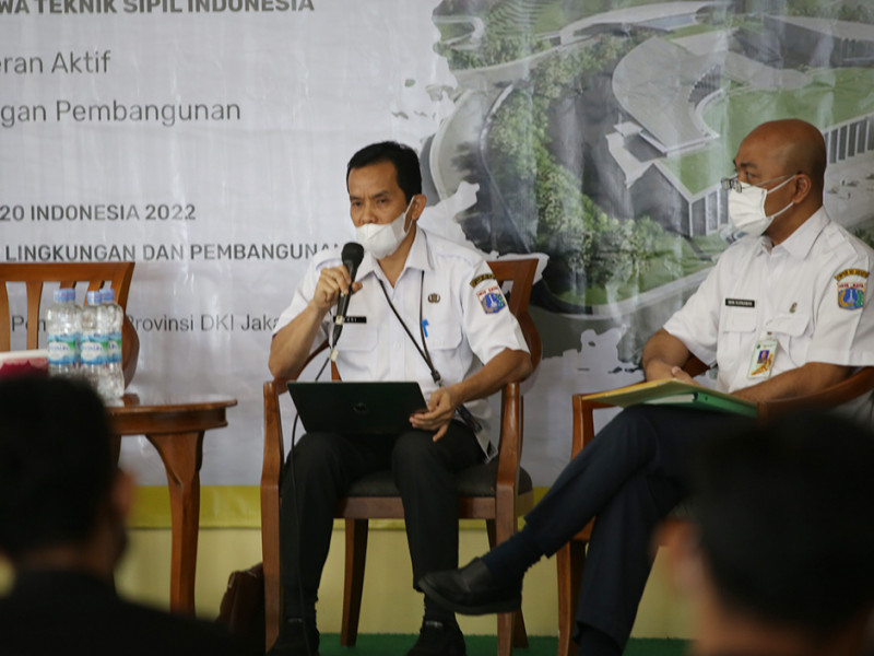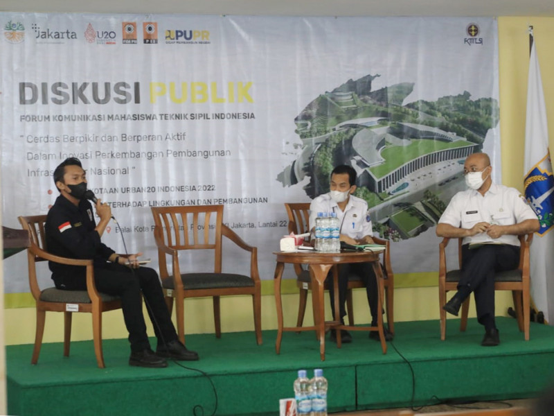 Pemerintah Provinsi (Pemprov) DKI Jakarta bersama Forum Komunikasi Mahasiswa Teknik Sipil Indonesia Wilayah V Jakarta-Lampung mengadakan Diskusi Publik dan Temu Keluarga di Gedung Blok G, Balai Kota Jakarta, Rabu (25/5). Diskusi bertajuk \"Cerdas Berfikir dan Berperan Aktif dalam Inovasi Perkembangan Pembangunan Infrastrukur Nasional\" ini dilaksanakan secara hybrid dan diikuti 140 peserta dari beberapa universitas di Jakarta dan Lampung. (Foto: Mochamad Tresna Suheryanto/beritajakarta.id)