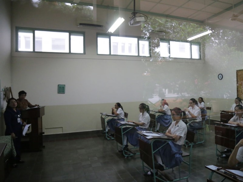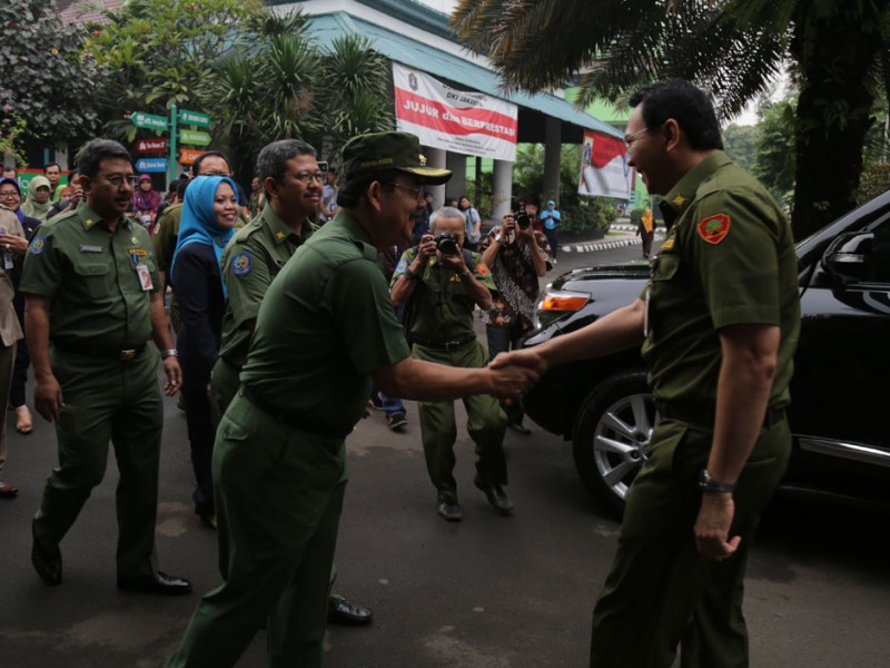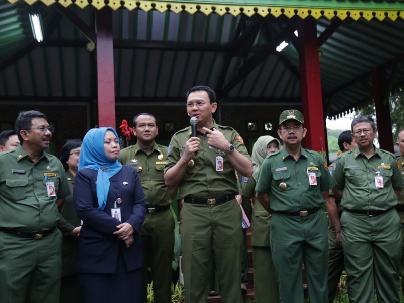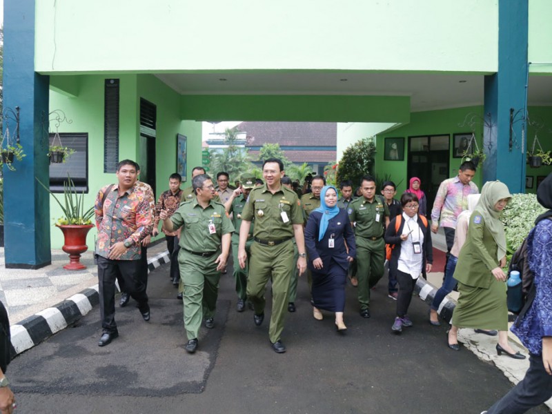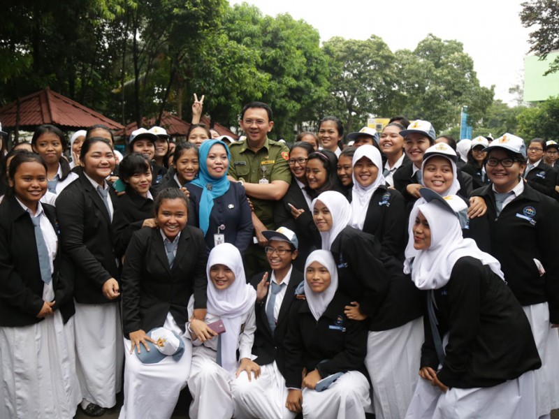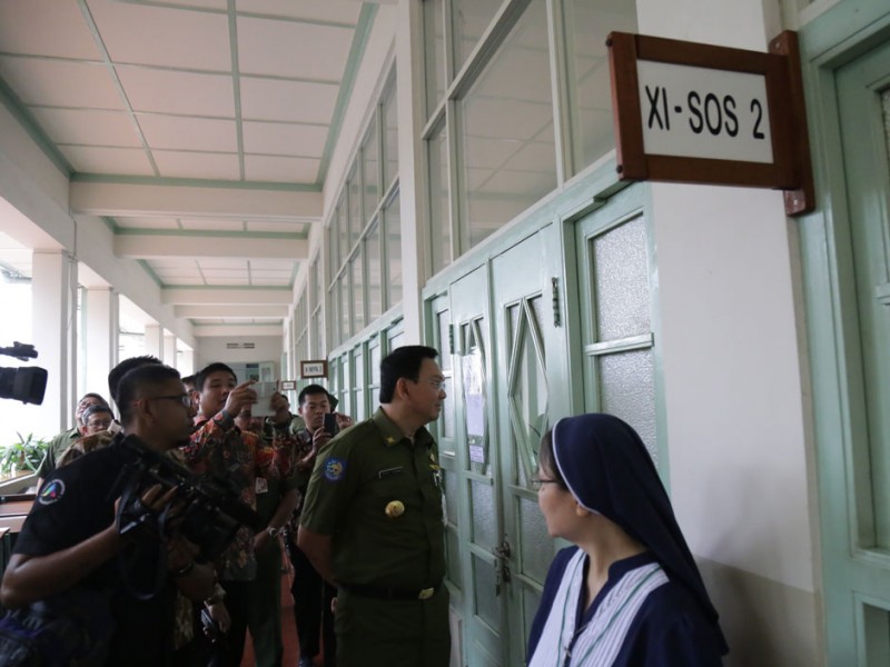 Gubernur DKI Jakarta, Basuki Tjahaja Purnama memberikan motivasi dan peninjauan peserta didik yang mengikuti kegiatan Ujian Nasional (UN), Senin (13/04/2015). Peninjauan dilakukan Basuki di SMK Negeri 27 dan Sekolah Santa Ursula, Sawah Besar, Jakarta Pusat. (Foto: Reza/beritajakarta.com)