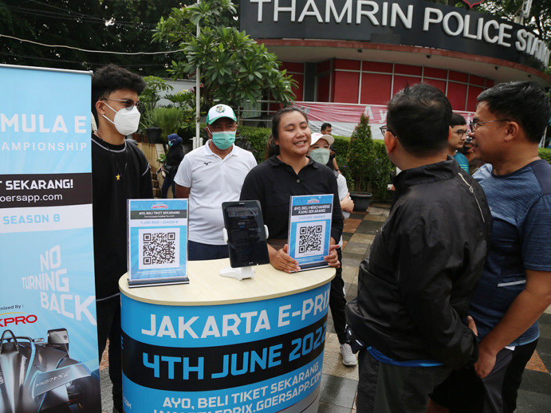 Ada yang menarik pada pelaksanaan Hari Bebas Kendaraan Bermotor (HBKB) di kawasan Bundaran HI hari ini, Minggu (29/5). Kegiatan turut diramaikan dengan pameran replika mobil Formula E. Pameran tersebut untuk mengenalkan kepada masyarakat jet darat bertenaga listrik yang akan beradu kecepatan di Jakarta International E-Prix Circuit (JIEC) pada 4 Juni 2022 mendatang. (Foto: Reza Hapiz/beritajakarta.id)
