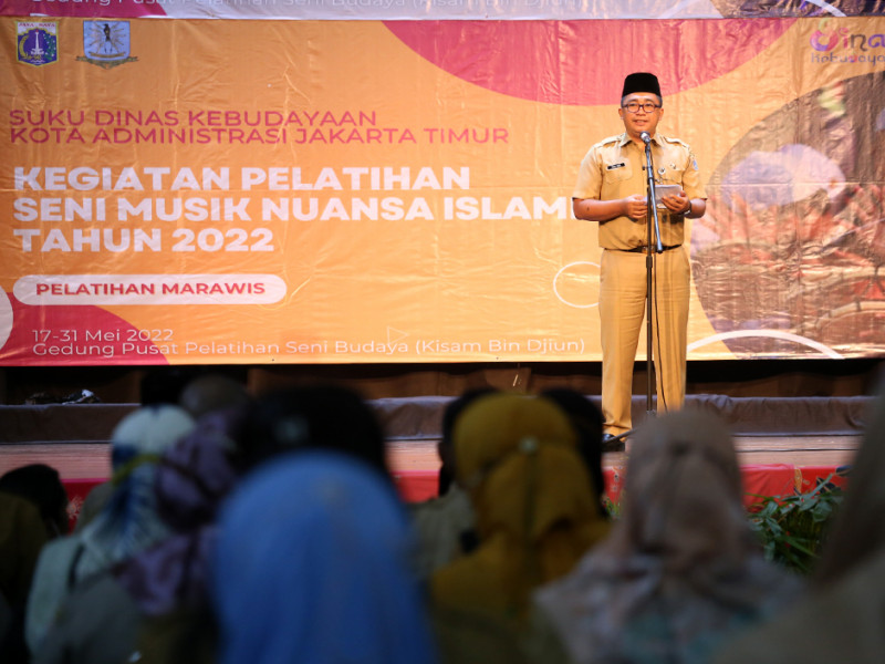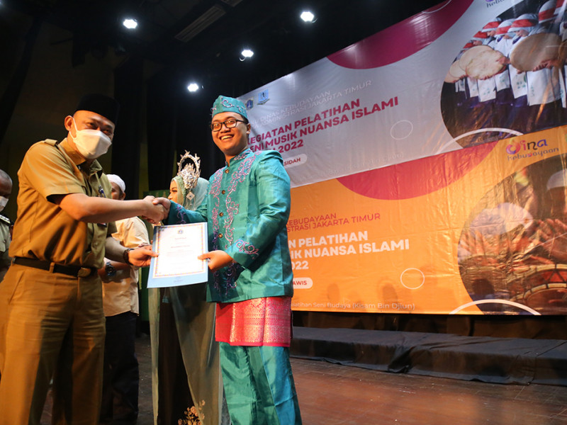 Sekretaris Kota Jakarta Timur, Fredy Setiawan secara resmi menutup Pelatihan Seni Musik Nuansa Islami 2022 di Gedung Unit Pengelola Pusat Pelatihan Seni Budaya (UP PPSB), Kelurahan Pondok Kelapa, Duren Sawit, Jakarta Timur, Selasa (31/5). Kegiatan yang dimulai sejak 17 Mei 2022 ini diikuti 60 peserta dari 10 kecamatan se-Jakarta Timur. (Foto: Mochamad Tresna Suheryanto/beritajakarta.id)