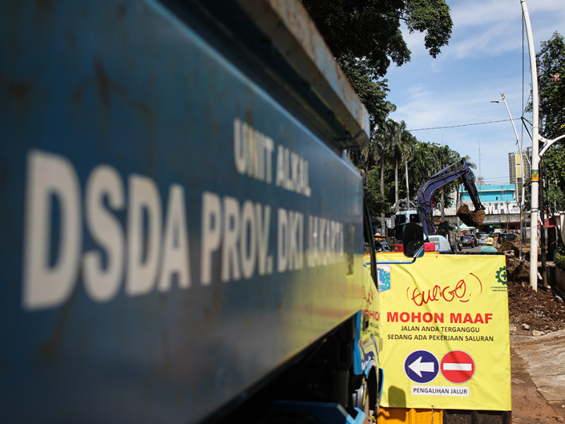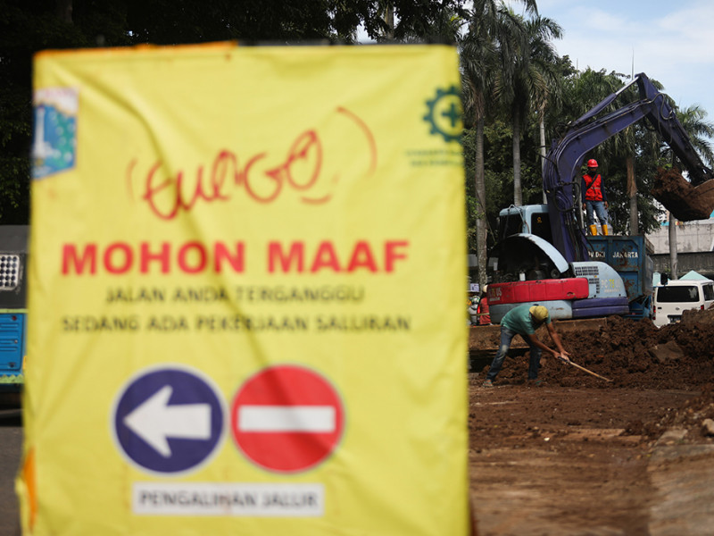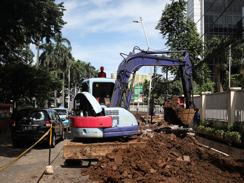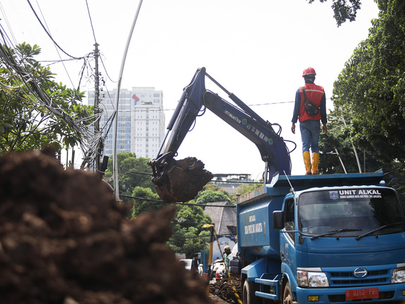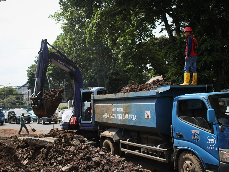 Dinas SDA Bersihkan Tanah Galian Proyek Saluran Air di Tugu Proklamasi