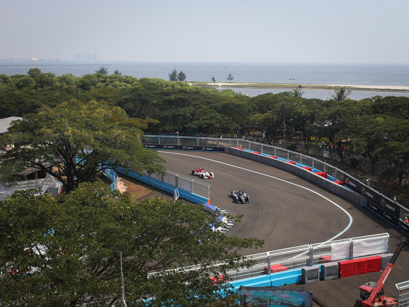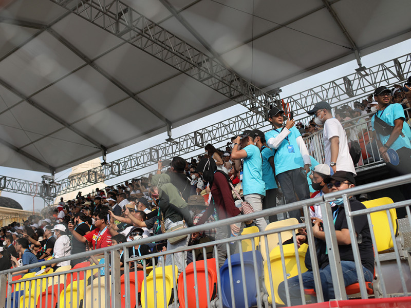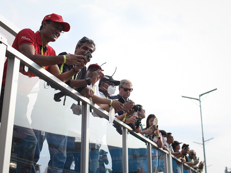 Puluhan ribu penonton memadati area tribun dan festival pada perhelatan Jakarta E-Prix 2022 di Jakarta International E-Prix Circuit (JIEC), Ancol, Jakarta Utara, Sabtu (4/6). Organizing Committee (OC) Jakarta E-Prix menyediakan kapasitas penonton sebanyak 50.000 orang. (Foto: Nugroho Sejati/beritajakarta.id)