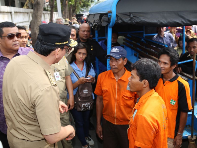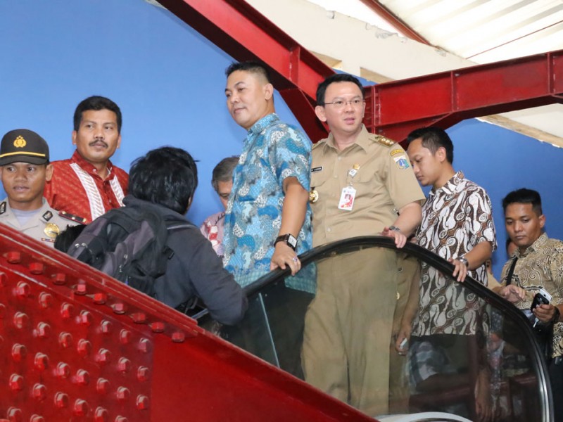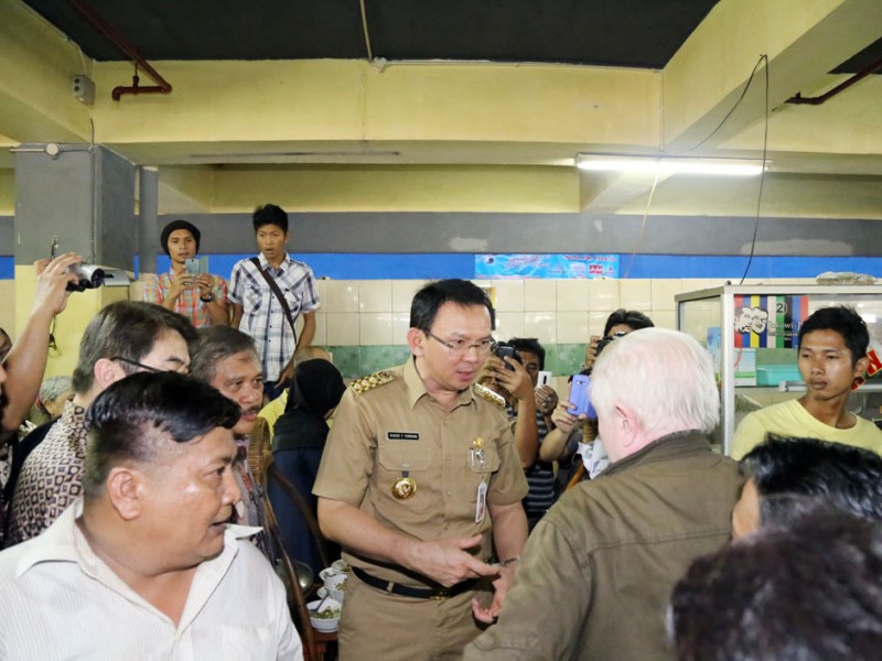 Gubernur DKI Jakarta, Basuki Tjahaja melakukan kunjungan kerja (Kuker) ke Stasiun Tanah Abang dan Pasar Blok G Tanah Abang, Jakarta Pusat, Rabu (15/04/2015). Kedatangan Basuki disambut antusias masyarakat. Bahkan, beberapa diantaranya mengabadikan momen pertemuannya dengan Gubernur menggunakan telepon genggam.(Foto: Yopie / Beritajakarta.com)