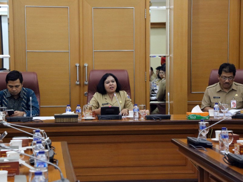Kepala Badan Perpustakaan dan Arsip Daerah Provinsi DKI Jakarta, Tinia Budiati mewakili Gubernur DKI Jakarta Basuki Tjahaja Purnama menerima kunjungan panitia khusus DPRD Provinsi Jawa Tengah, di Balaikota DKI Jakarta, Rabu (15/04/2015). Kunjungan ini dilakukan dalam rangka pembahasan rancangan Peraturan Daerah (Perda) tentang Kearsipan. (Foto : Yopie/Beritajakarta)