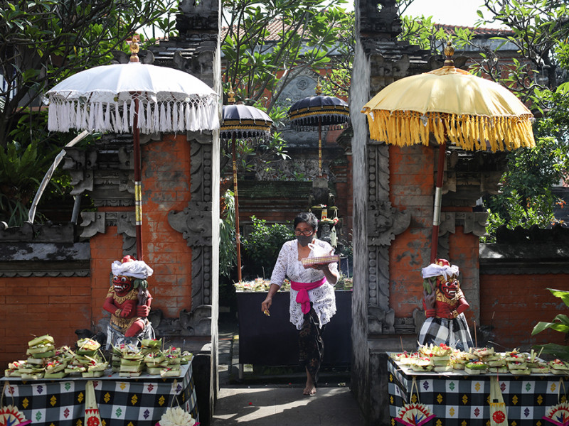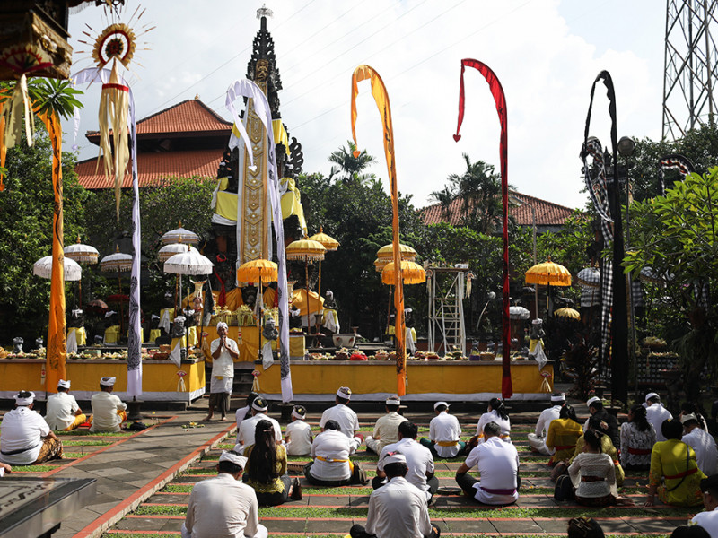 Prosesi Ibadah Hari Raya Galungan di Pura Aditya Jaya