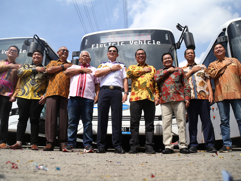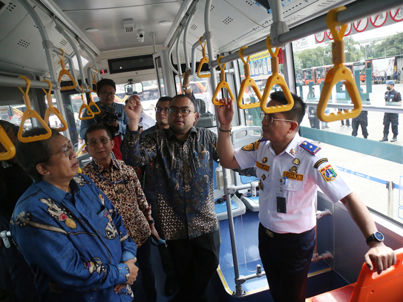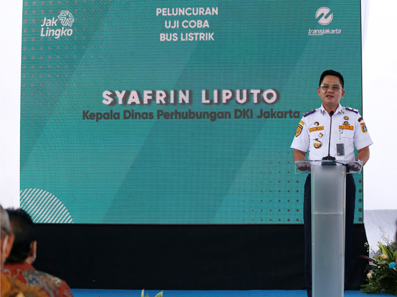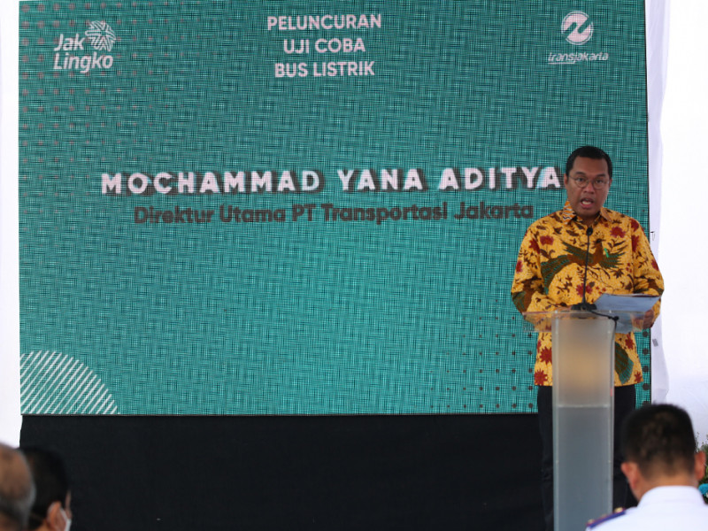 PT Transportasi Jakarta (Transjakarta) melakukan uji coba pengoperasian bus listrik di pool bus Terminal Kampung Rambutan, Jakarta Timur, Rabu (8/6). Uji coba dipimpin langsung oleh Kepala Dinas Perhubungan DKI Jakarta, Syafrin Liputo. (Foto: Mochamad Tresna Suheryanto/beritajakarta.id)
