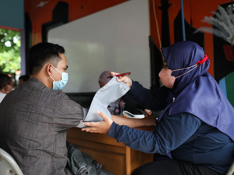 Dinas Kesehatan (Dinkes) DKI Jakarta mengadakan layanan pemeriksaan kesehatan bagi warga di Ruang Publik Terpadu Ramah Anak (RPTRA) Utakara Beriman, Matraman, Jakarta Timur (9/6). Pemeriksaan kesehatan tersebut meliputi skrining kesehatan jiwa, penyakit tidak menular, voluntary counseling testing (VCT), dan tuberculosis (TB). (Foto: Nugroho Sejati/beritajakarta.id)