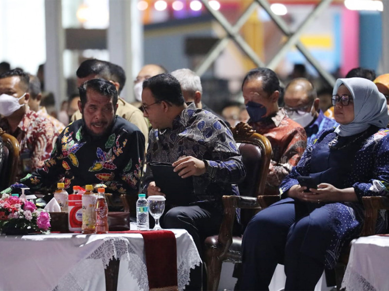 Gubernur DKI Jakarta, Anies Baswedan membuka Pekan Raya Jakarta (PRJ) atau Jakarta Fair di Jakarta Internasional Expo (JIExpo) Kemayoran, Jakarta Pusat, Kamis (9/6) malam. Pameran terbesar se-Asia Tenggara tersebut diselenggarakan mulai 9 Juni-17 Juli 2022. (Foto: Reza Hapiz/beritajakarta.id)