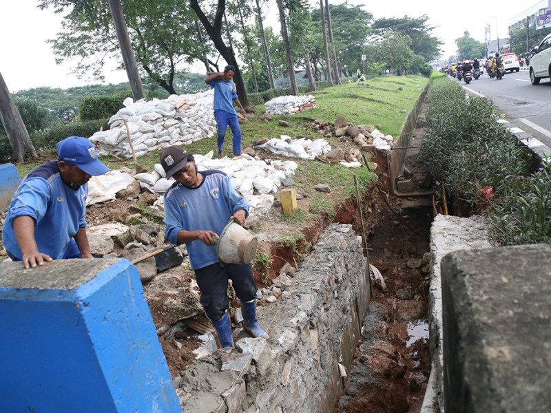Peninggian Dinding Saluran di Jalan Kolonel Sugiono