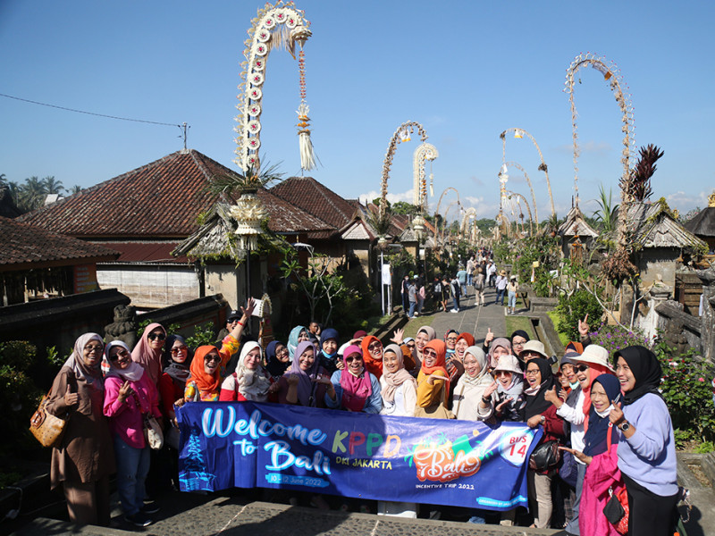 Sejumlah anggota Koperasi Pegawai Pemerintah Daerah (KPPD) DKI Jakarta tampak semringah saat mengikuti Tour Reward tahun 2022 di Bali, Minggu (12/6). Dalam rangkaian tur tersebut para peserta diajak mengunjungi beberapa objek wisata yang menawan seperti Bedugul, Tanah Lot, Jimbaran, Desa Penglipuran Bangil, Kintamani dan Nusa Dua. (Foto: Mochamad Tresna Suheryanto/beritajakarta.id)