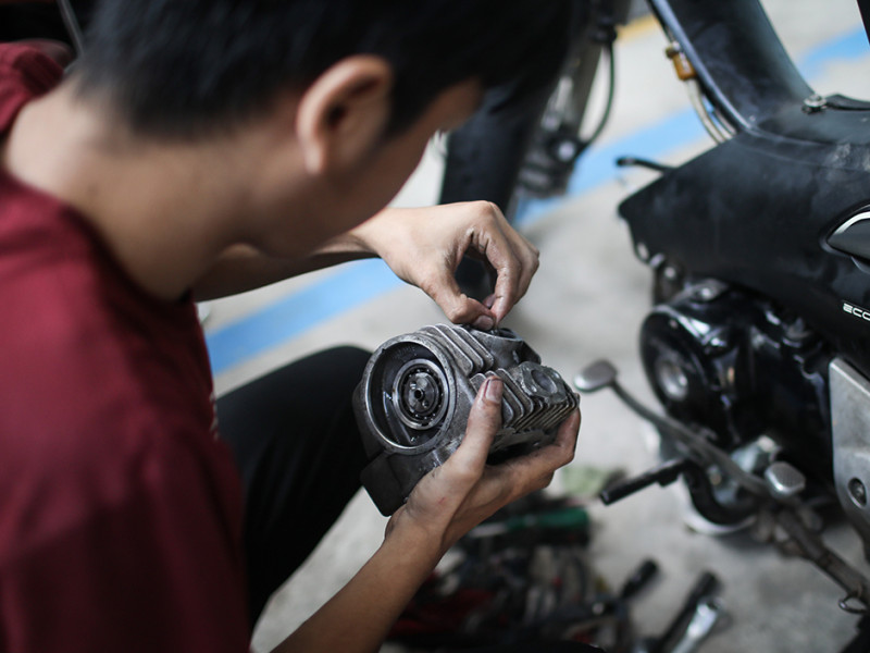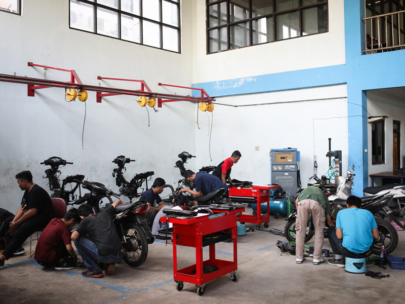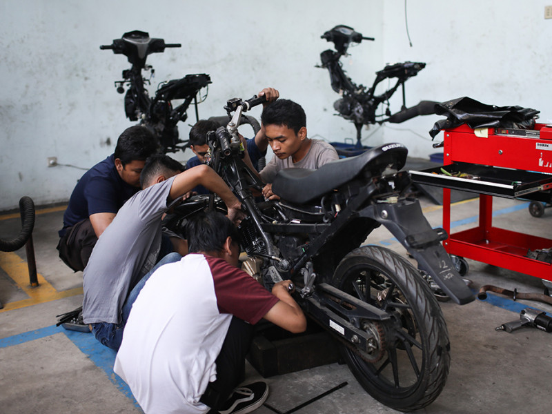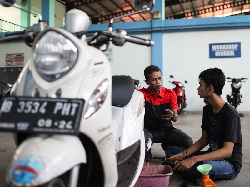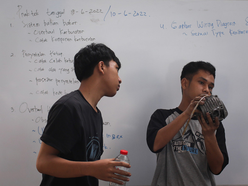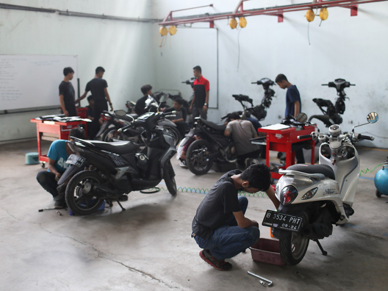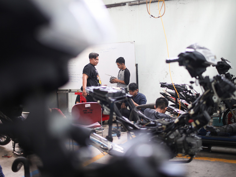 Sebanyak 20 peserta mengikuti pelatihan teknik otomotif sepeda motor di Pusat Pelatihan Kerja Daerah (PPKD) Jakarta Timur, Jalan H Naman, Kecamatan Duren Sawit, Jumat (10/6). Pelatihan yang diadakan oleh Dinas Tenaga Kerja, Transmigrasi, dan Energi (Nakertransgi) tersebut berlangsung selama sebulan lebih, mulai dari 23 Mei sampai 30 Juni 2022. (Foto: Nugroho Sejati/beritajakarta.id)