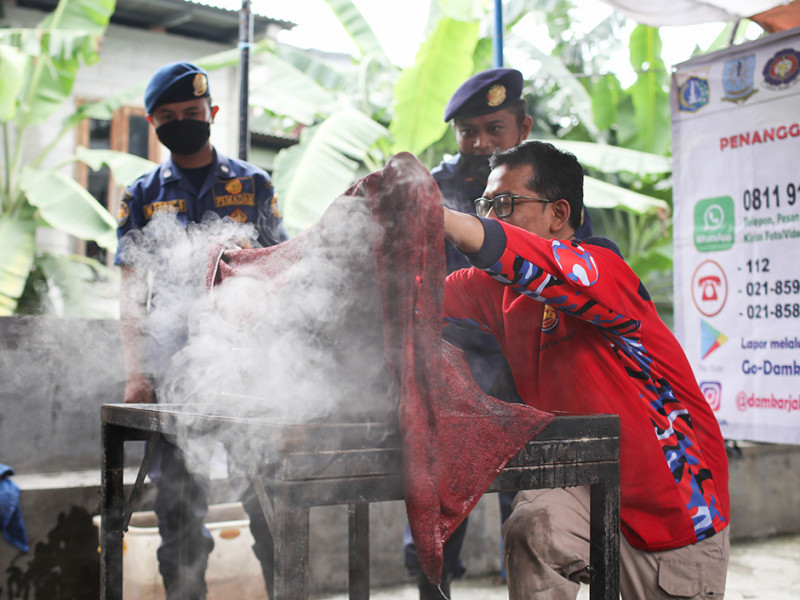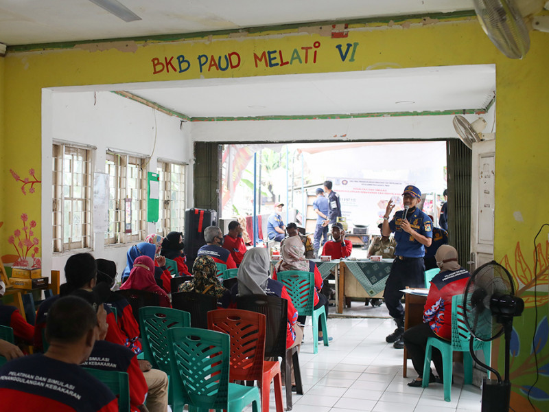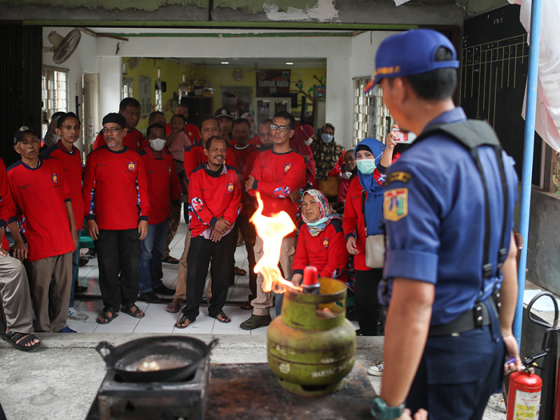 Suku Dinas Penanggulangan Kebakaran dan Penyelamatan (Sudin Gulkarmat) Jakarta Timur mengadakan sosialisasi penanggulangan kebakaran dan penyelamatan di Kantor Sekretariat RW 06, Kelurahan Palmeriam, Kecamatan Matraman, Senin (13/6). (Foto: Nugroho Sejati/beritajakarta.id)