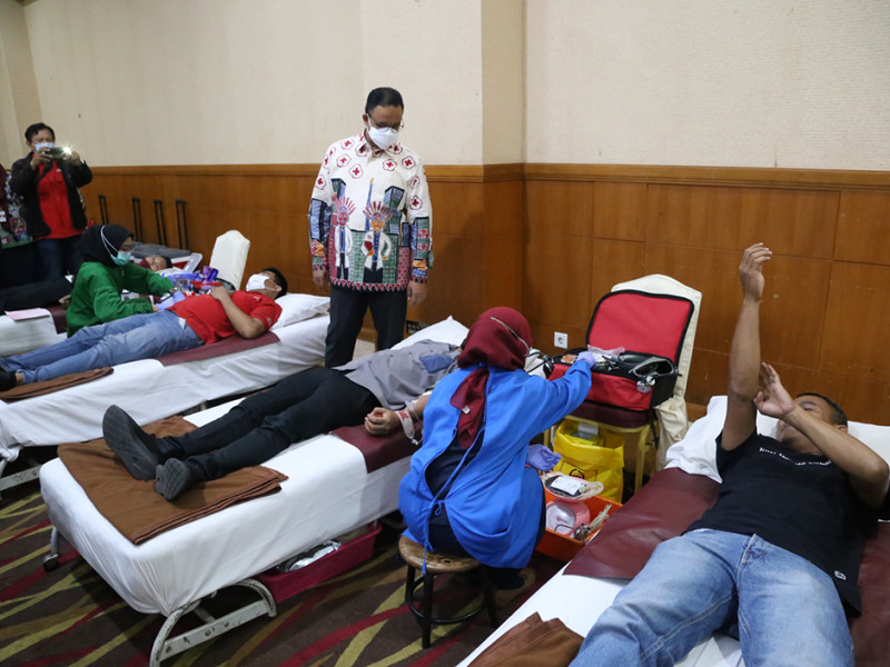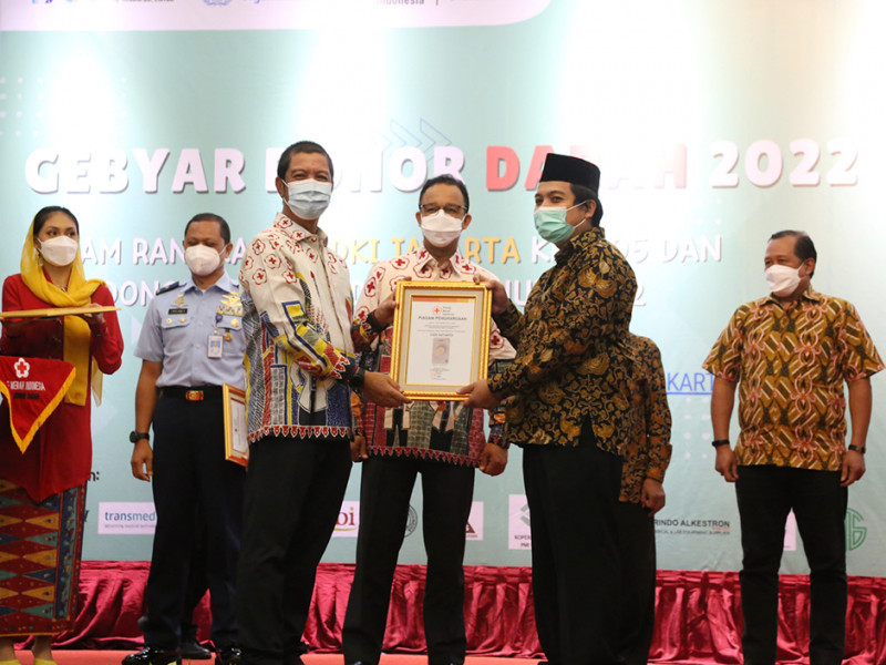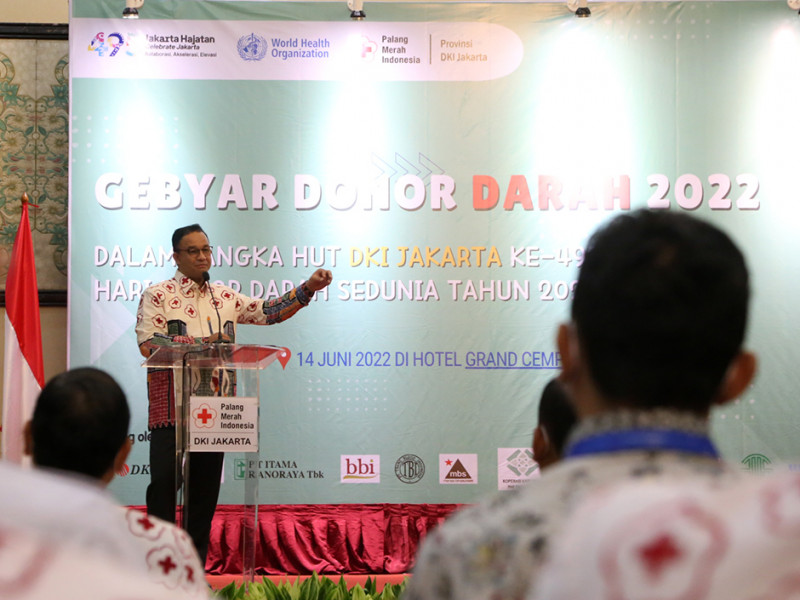 Gubernur DKI Jakarta, Anies Baswedan menghadiri peringatan Hari Donor Darah Sedunia Tahun 2022 Tingkat Provinsi DKI Jakarta. Kegiatan berlangsung di Grand Cempaka Business Hotel, Jalan Letjen Suprapto, Cempaka Putih, Jakarta Pusat, Selasa (14/6). (Foto: Reza Hapiz/beritajakarta.id)