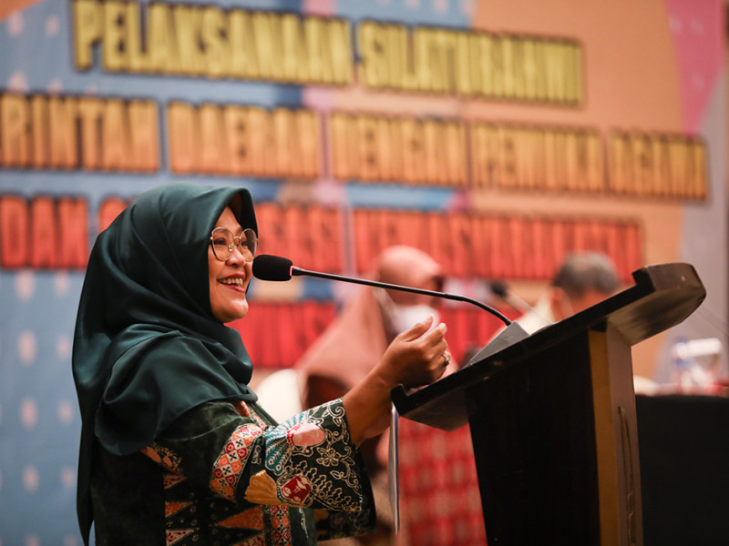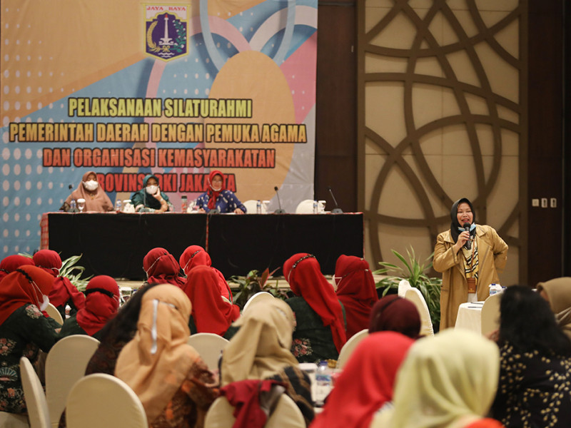 Dharma Wanita Persatuan (DWP) Provinsi DKI Jakarta bersama Badan Kesatuan Bangsa dan Politik (Bakesbangpol) DKI Jakarta menyelenggarakan Silaturahmi Pemerintah Daerah dengan Pemuka Agama dan Organisasi Kemasyarakatan di Hotel Discovery, Ancol, Jakarta Utara, Selasa (14/6). Dalam kegiatan silaturahmi ini juga sekaligus diadakan seminar dengan menghadirkan Soimah dari Kanwil Kementerian Agama DKI Jakarta dan Yusriah Dzinnun, anggota DPRD Provinsi DKI Jakarta sebagai narasumber. (Foto: Nugroho Sejati/beritajakarta.id)