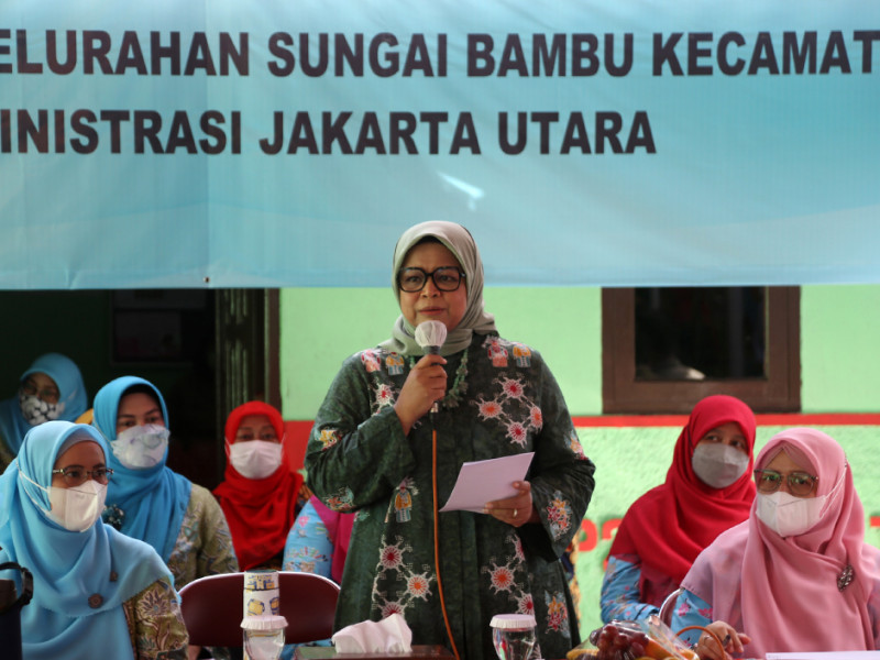 Ketua Tim Penggerak (TP) PKK DKI Jakarta, Fery Farhati didampingi Ketua Bidang Pokja I TP PKK DKI Jakarta, Ellisa Sumarlin melakukan kunjungan kerja ke Pusat Informasi dan Konsultasi (PIK) Keluarga RW 04, Kelurahan Sungai Bambu, Tanjung Priok, Jakarta Utara, Selasa (14/6). (Foto: Mochamad Tresna Suheryanto/beritajakarta.id)
