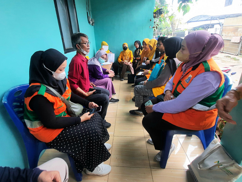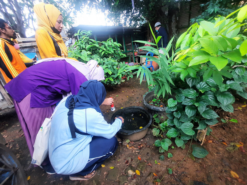 Pemberantasan Sarang Nyamuk (PSN) di wilayah Jakarta Timur terus digencarkan sebagai upaya mencegah serta menekan angka kasus Demam Berdarah Dengue (DBD), Jumat (17/6). Kegiatan kali ini dilakukan di RW 03, Kelurahan Rawa Bunga untuk menciptakan lingkungan yang bersih dan sehat serta terbebas dari jentik nyamuk. (Foto: Reza Hapiz/beritajakarta.id)