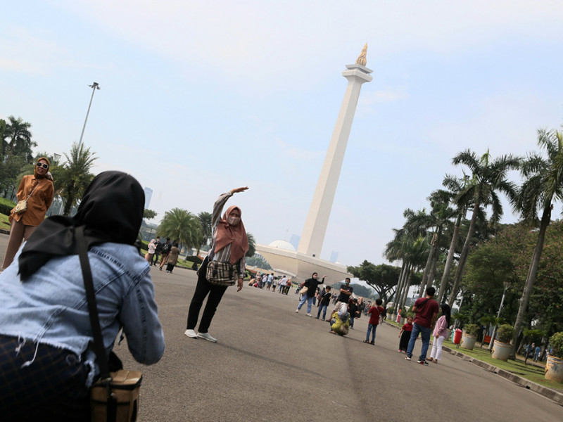 Kawasan Monumen Nasional (Monas), Gambir, Jakarta Pusat kembali dibuka setelah vakum selama dua tahun imbas pandemi COVID-19. Pembukaan ini menjawab kerinduan warga yang hendak berkunjung ke kawasan tersebut. (Foto: Reza Hapiz/beritajakarta.id)