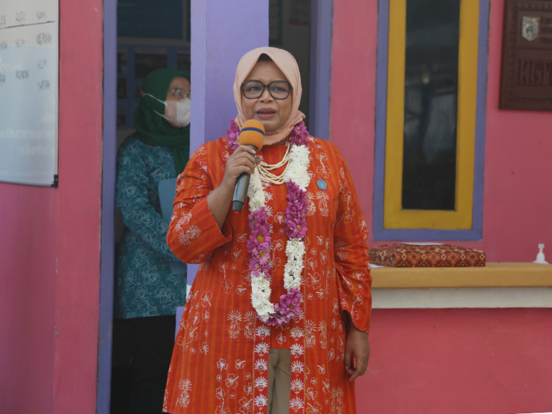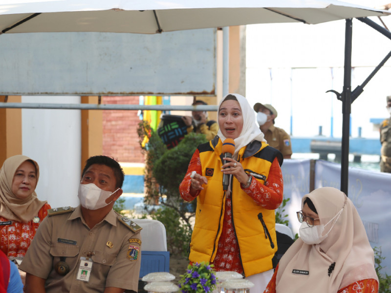 Ketua Tim Penggerak Pemberdayaan dan Kesejahteraan Keluarga (TP PKK) Provinsi DKI Jakarta, Fery Farhati didampingi Ketua Bidang Pembinaan Karakter Keluarga TP PKK DKI Jakarta, Ellisa Sumarlin melakukan kunjungan ke Pusat Informasi dan Konsultasi (PIK) Keluarga RW 03, Kelurahan Pulau Untung Jawa, Kepulauan Seribu Selatan, Kabupaten Kepulauan Seribu, Senin (20/6). (Foto: Reza Hapiz/beritajakarta.id)