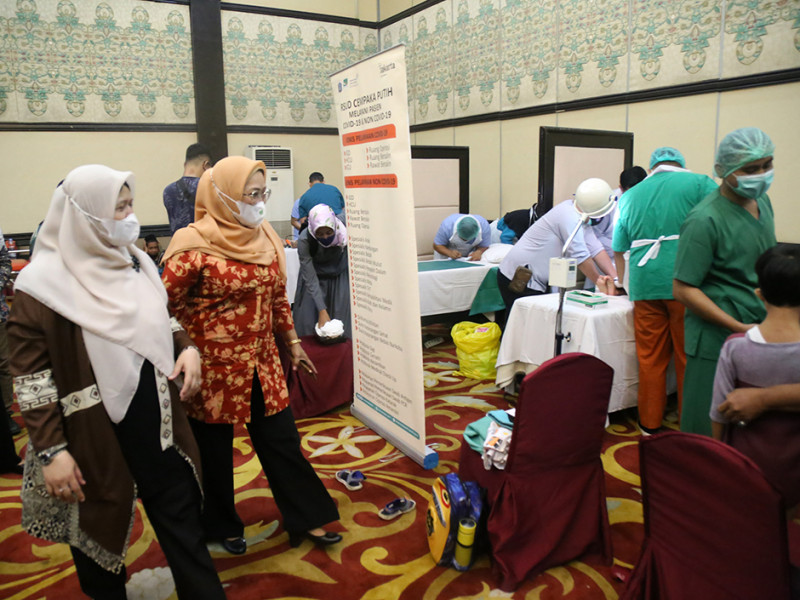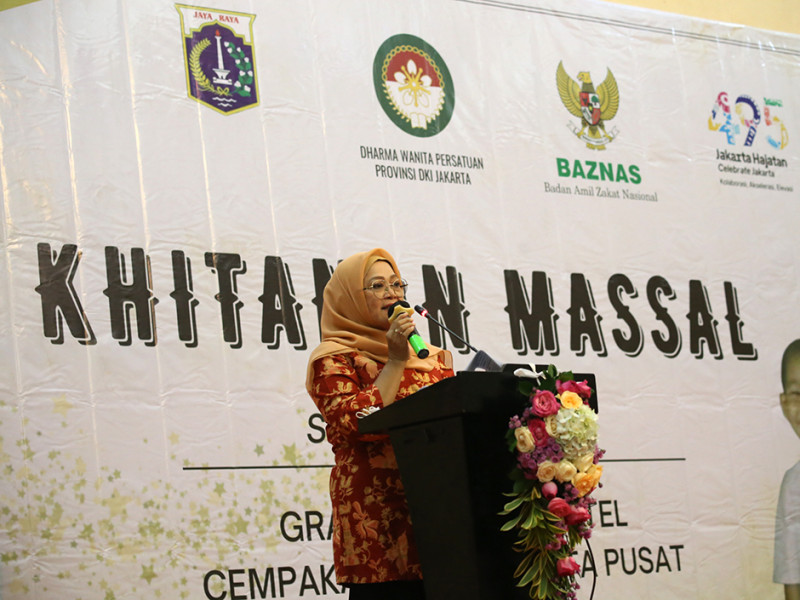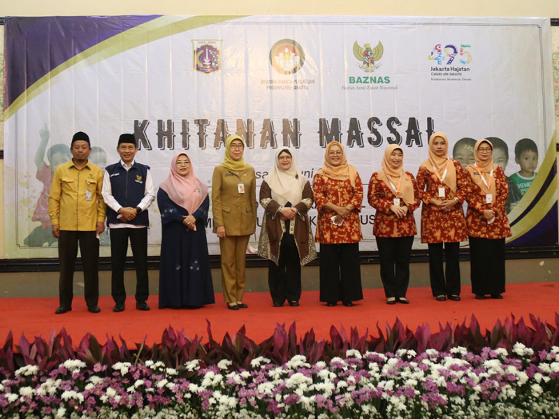 Dharma Wanita Persatuan (DWP) Provinsi DKI Jakarta menggelar bakti sosial khitanan massal dalam rangka memeriahkan Jakarta Hajatan ke-495 di Hotel Grand Cempaka, Cempaka Putih, Jakarta Pusat, Selasa (21/6). Kegiatan ini berkolaborasi dengan Dinas Kesehatan, Dinas Perlindungan Anak dan Pengendalian Penduduk (PPAPP), Dinas Perpustakaan dan Kearsipan (Dispusip), dan Baznas Bazis DKI Jakarta. (Foto: Mochamad Tresna Suheryanto/beritajakarta.id)