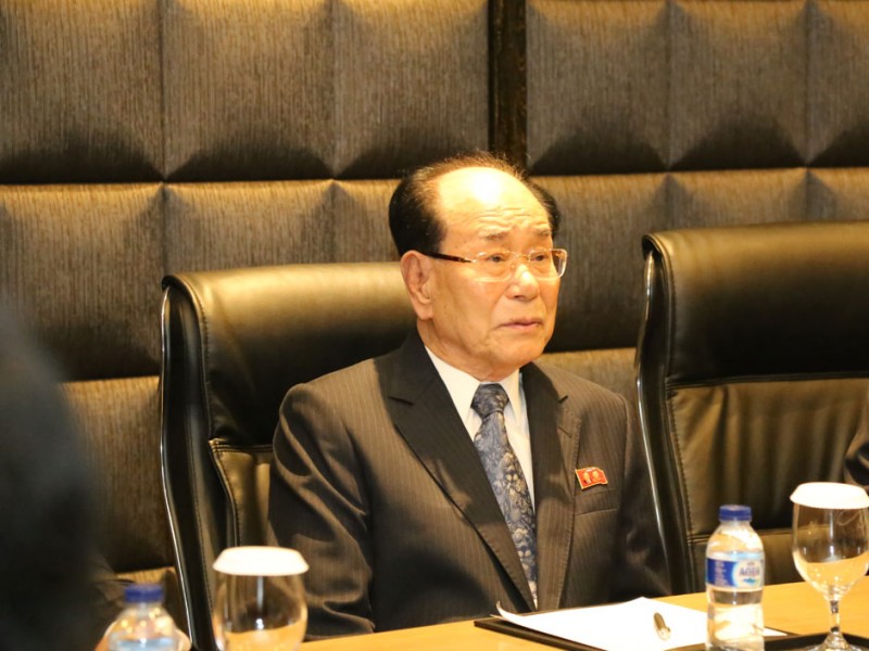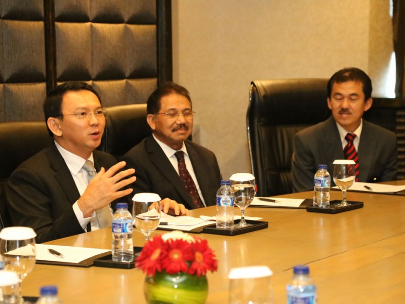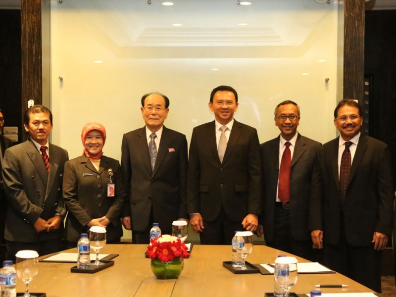 Gubernur DKI Jakarta, Basuki Tjahaja Purnama melakukan pertemuan dengan Presiden Presidium Majelis Tertinggi Rakyat Republik Demokratik Rakyat Korea (RDRK), Kim Yong Nam, di salah satu hotel di kawasan Jakarta Pusat, Selasa (21/04/2015). Pertemuan dilakukan untuk membahas kerjasama antara kedua belah pihak baik dari sisi investasi bisnis maupun program sosial dan lingkungan hidup.(Foto: Yopie/Beritajakarta.com)