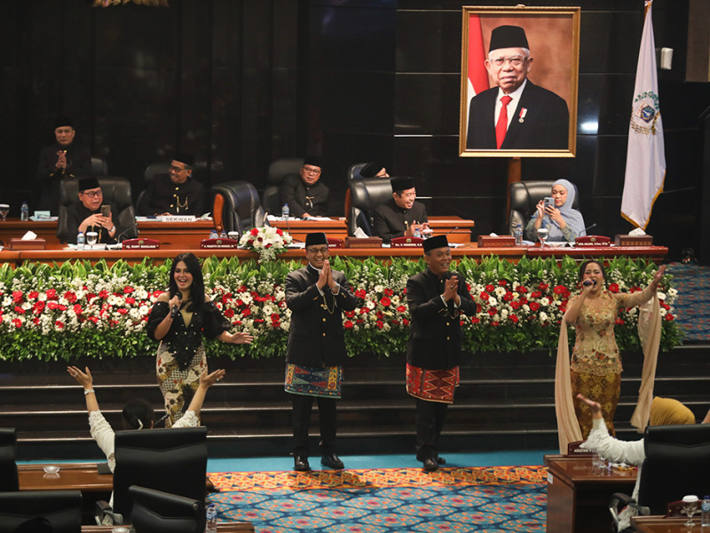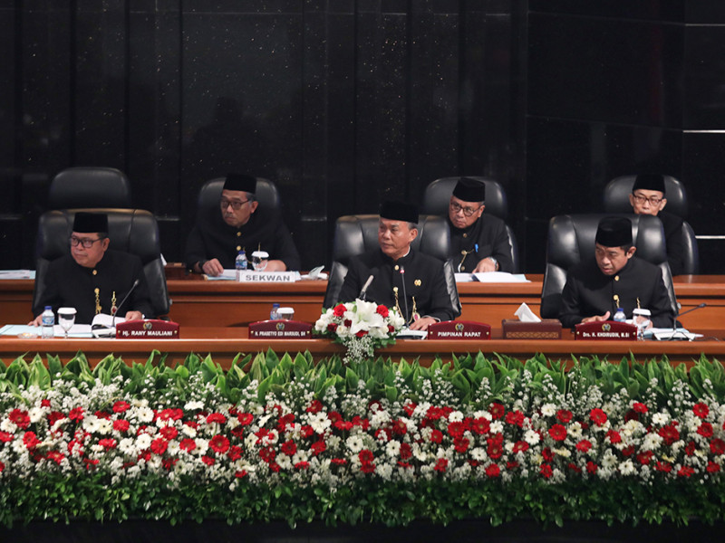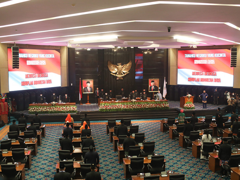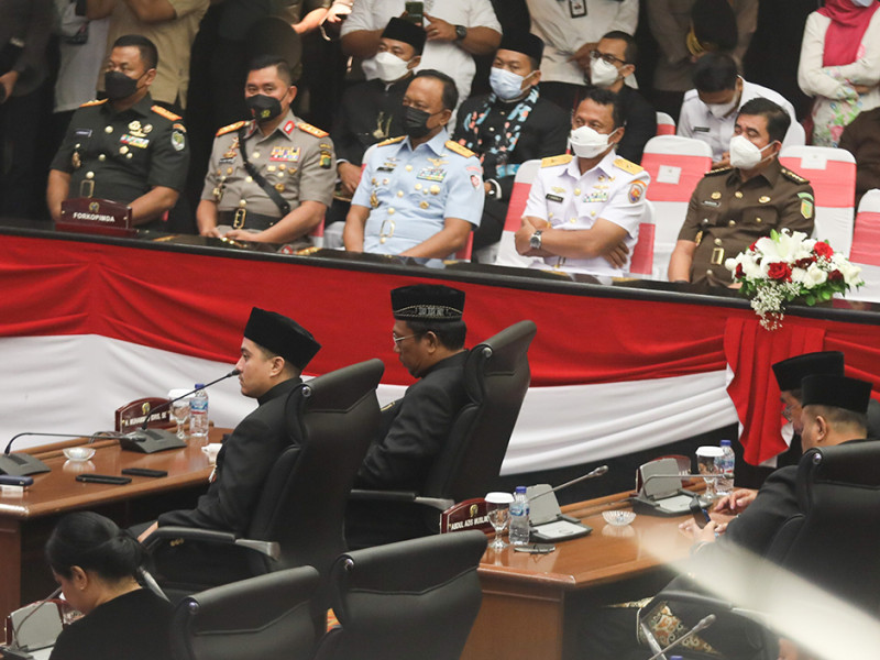 Dewan Perwakilan Rakyat Daerah (DPRD) Provinsi DKI Jakarta menggelar Rapat Paripurna Jakarta Hajatan ke-495, Rabu (22/6). Rapat Paripurna dipimpin langsung oleh Ketua DPRD, Prasetio Edi Marsudi dan dihadiri oleh Gubernur, Wagub, serta jajaran Pemprov DKI Jakarta. (Foto: Nugroho Sejati/beritajakarta.id)