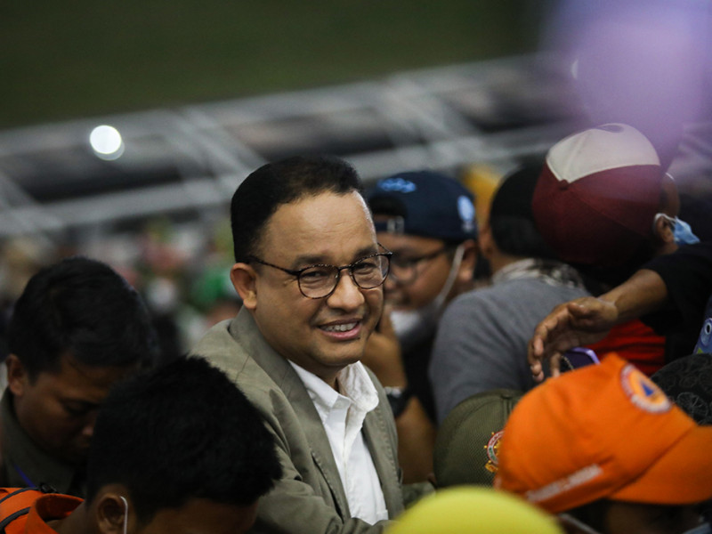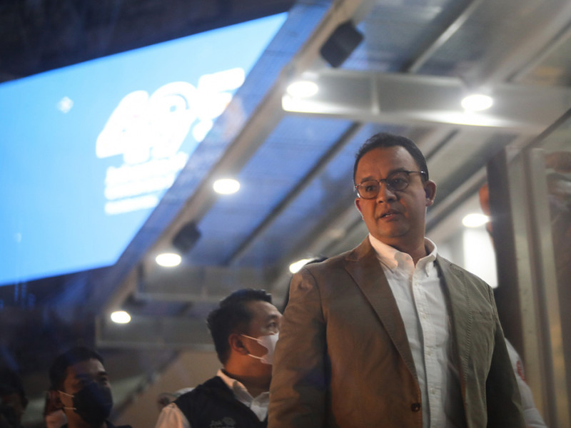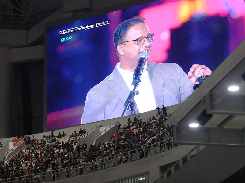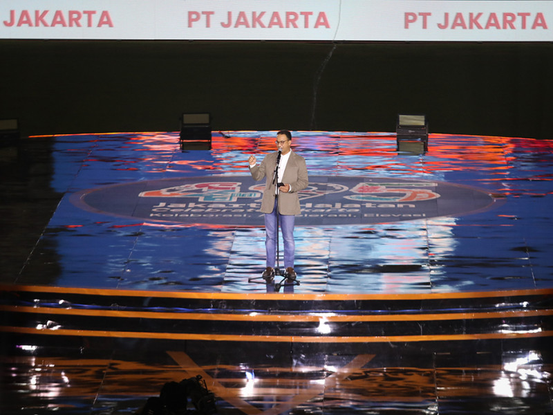 Gubernur DKI Jakarta, Anies Baswedan, hadir dalam malam puncak perayaan Jakarta Hajatan ke-495 di Jakarta International Stadium (JIS), Tanjung Priok, Jakarta Utara, Sabtu (25/6). Dalam acara yang bertemakan \"Kolaborasi, Akselerasi, dan Elevasi\" tersebut turut dimeriahkan oleh musisi kenamaan tanah air, seperti grup band Padi, Ungu dan Wali, serta solois Reza Artamevia, Mahalini, Lea Simanjuntak dan Kojek. (Foto: Nugroho Sejati/beritajakarta.id)