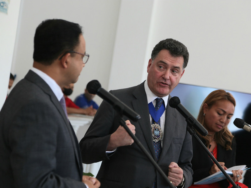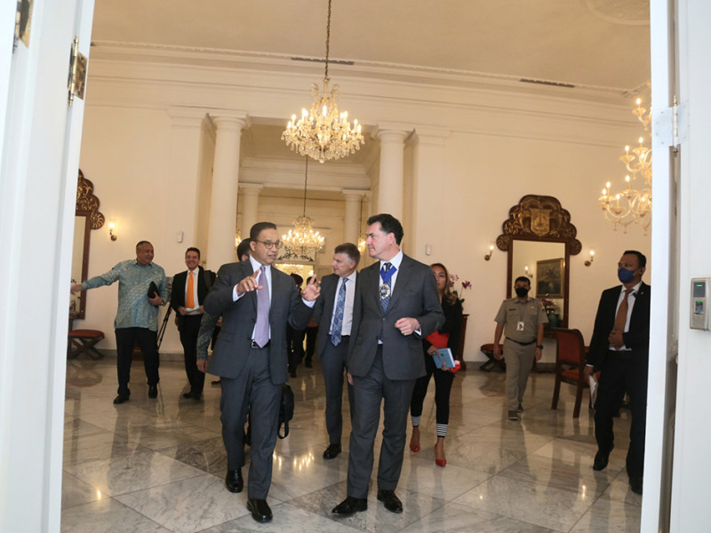 Gubernur DKI Jakarta, Anies Baswedan menerima Lord Mayor of the City of London, Alderman Vincent Keaveny di Balai Kota DKI Jakarta, senin (27/6). Pertemuan ini membahas tentang kerja sama kedua belah pihak di bidang transportasi. (Foto: Reza Hapiz/beritajakarta.id)