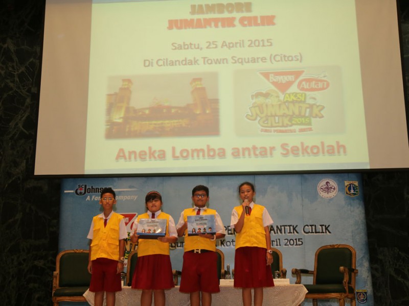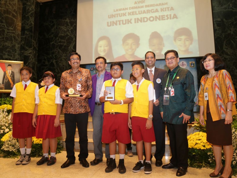 Wakil Gubernur DKI Jakarta, Djarot Saiful Hidayat meresmikan Jambore Jumantik Cilik Tahun 2015, di Balaikota DKI Jakarta, Kamis (23/04/2015). Nantinya murid-murid dari 55 sekolah dasar akan dilibatkan untuk mencegah penyakit demam berdarah dengue (DBD) yang disebabkan nyamuk Aedes Aigypti.(Foto: Reza / Beritajakarta.com)