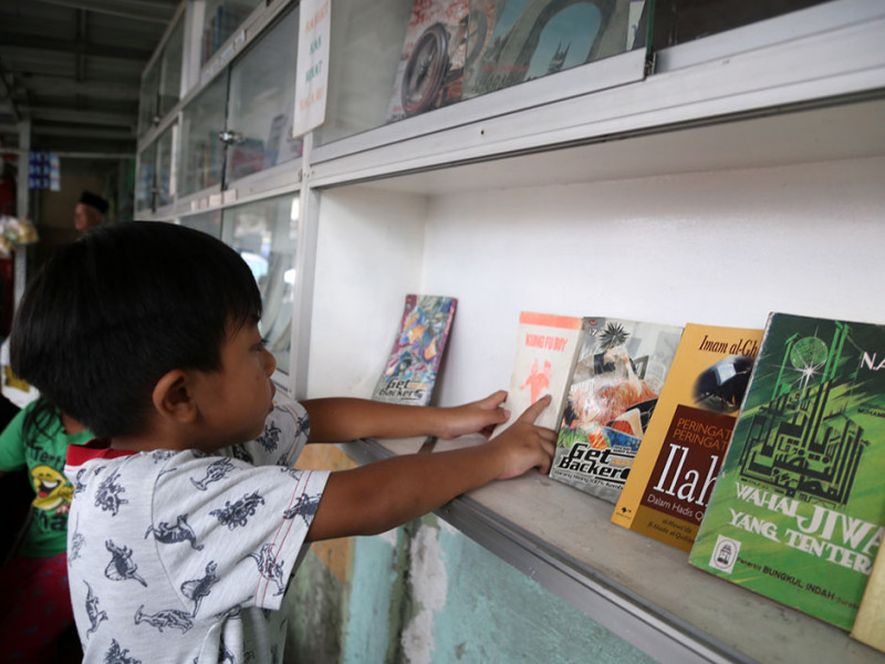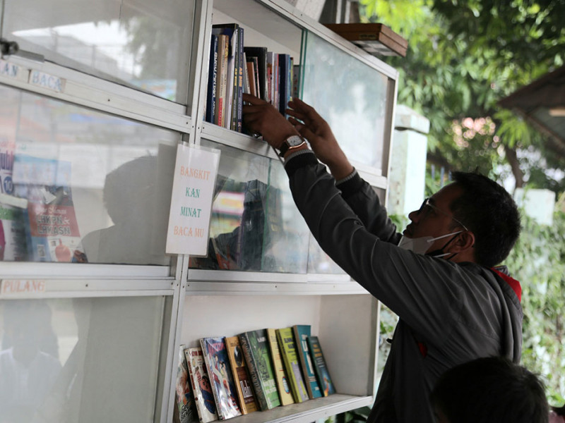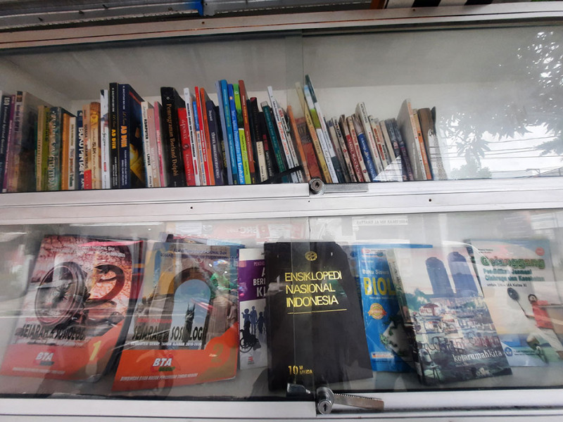 Warga RW 03, Kelurahan Rawa Bunga, Jatinegara, Jakarta Timur memiliki perpustakaan mini di Jalan Bekasi Timur IX. Dinamai Pojok Bacaan RW 03, beragam genre buku mulai dari buku cerita, buku agama hingga buku-buku ilmiah dapat dinikmati masyarakat umum tanpa dipungut biaya alias gratis. (Foto: Reza Hapiz/beritajakarta.id)
