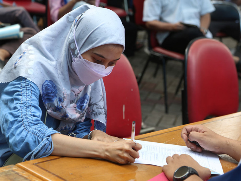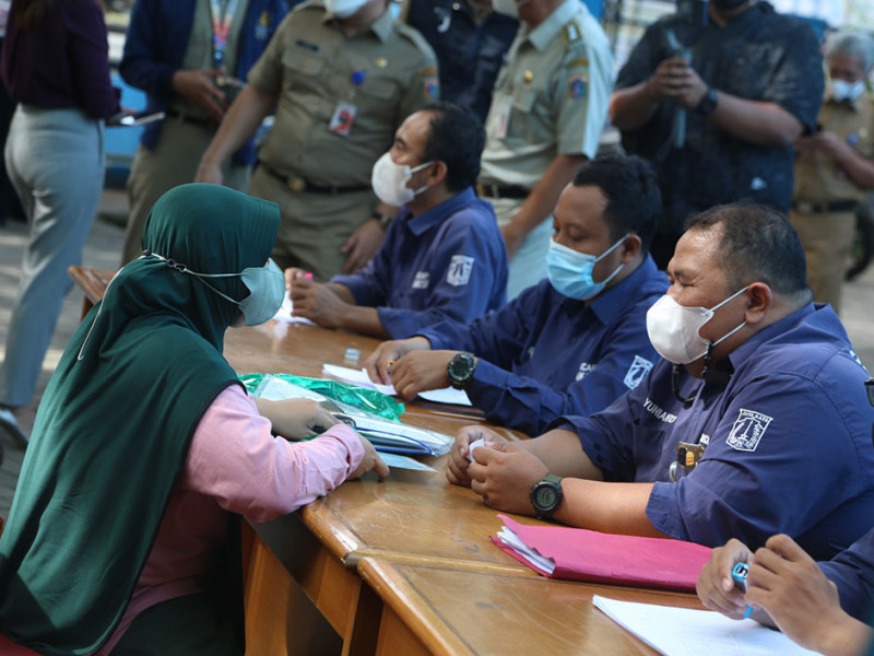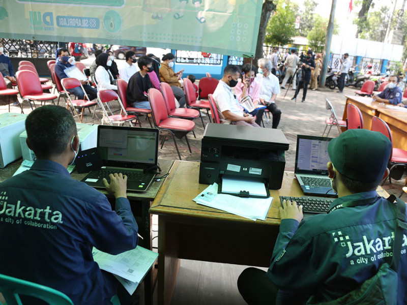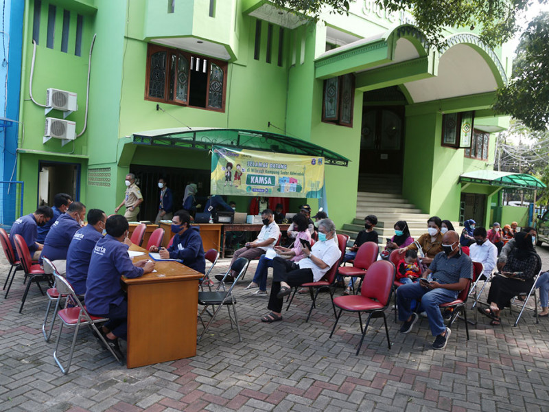 Dinas Kependudukan dan Pencatatan Sipil (Dukcapil) terus mengintensifkan layanan jemput bola (LJB) administrasi kependudukan (adminduk) terkait perubahan 22 nama jalan di Jakarta. Salah satunya digelar di Masjid KH Guru Amin, Jalan Raya KH Guru Amin, RW 07, Kelurahan Duren Tiga, Pancoran, Jakarta Selatan, Senin (4/7). (Foto: Reza Hapiz/beritajakarta.id)