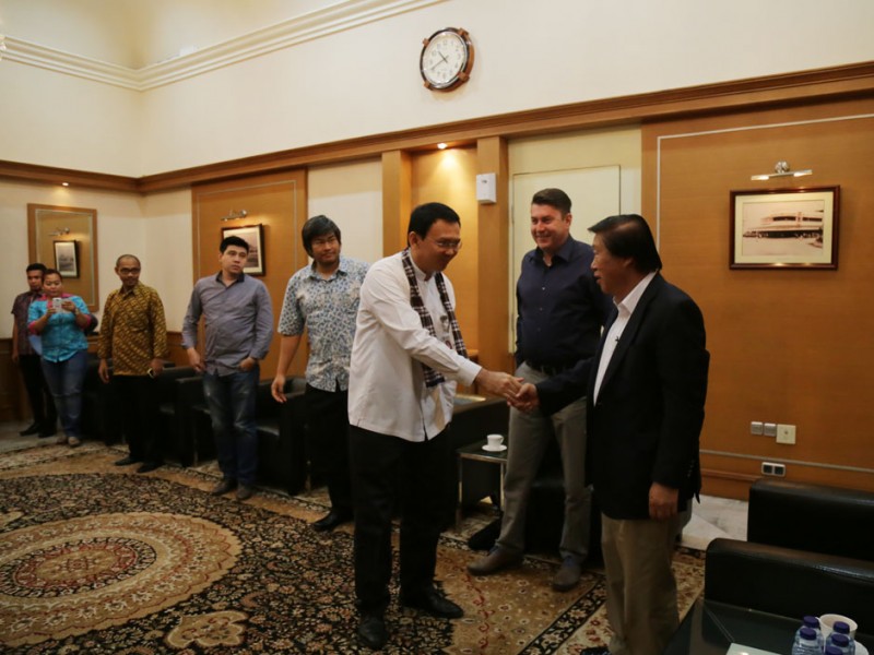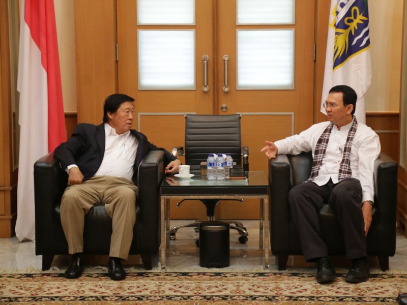 Gubernur DKI Jakarta, Basuki Tjahaja Purnama menerima kunjungan Direktur Utama PT Jakarta Internasional (JI) Expo, Murdaya Poo, di Balaikota DKI Jakarta, Jumat (24/04/2015). Dalam kesempatan tersebut Murdaya Poo meminta bantuan dan partisipasi Pemprov DKI Jakarta dalam pelaksanaan Jakarta Fair Tahun 2015.(Foto: Reza / Beritajakarta.com)