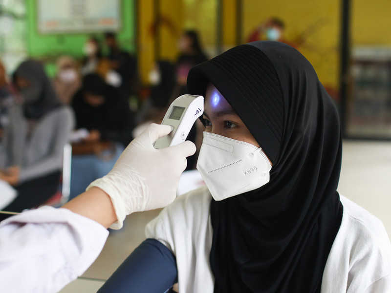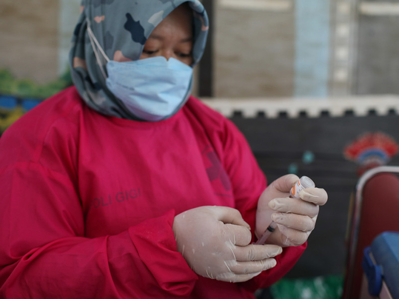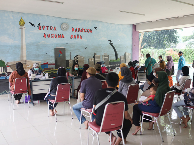 Puskesmas Kelurahan Pondok Ranggon, Cipayung, Jakarta Timur menggelar layanan vaksinasi COVID-19 di Ruang Publik Terpadu Ramah Anak (RPTRA) Ranggon Kusuma Baru , Rabu (6/7). Pihaknya menyediakan tiga jenis vaksin, yaitu Sinovac, AstraZeneca, dan Pfizer untuk berbagai dosis. (Foto: Nugroho Sejati/beritajakarta.id)