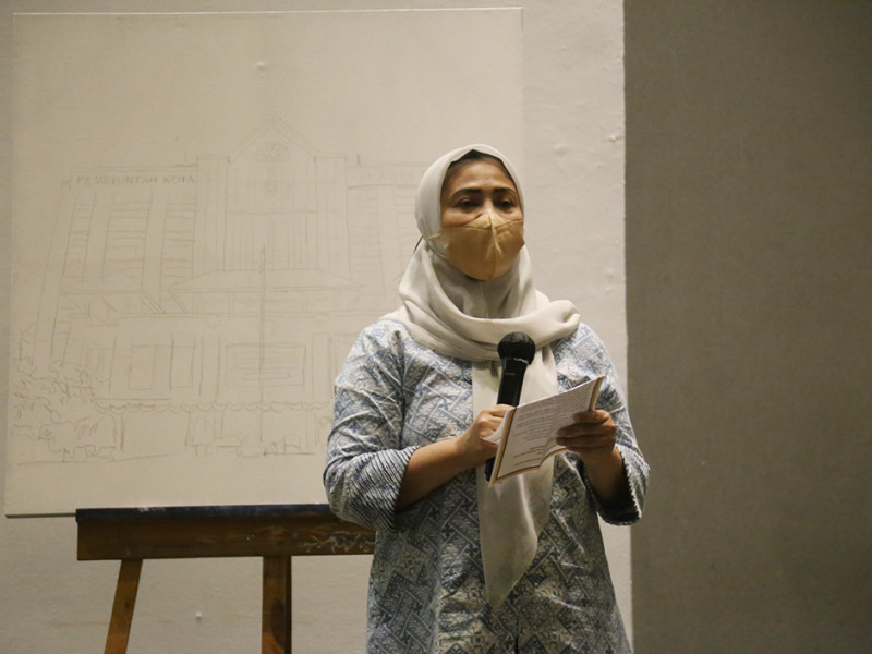 Sekretaris Kota (Sekko) Administrasi Jakarta Pusat, Iqbal Akbarudin membuka lokakarya seniman yang terlibat PUSAT Art Session di Artotel Thamrin Jakarta, Jalan Sunda, Kelurahan Gondangdia, Kecamatan Menteng, Rabu (6/7). Kegiatan ini merupakan hasil kolaborasi antara Suku Dinas Pariwisata dan Ekonomi Kreatif (Sudin Parekraf) Jakarta Pusat dan Ikatan Abang None Jakarta Pusat dengan Fakultas Seni Rupa dan Desain Institut Kesenian Jakarta (FSRD IKJ) serta Artotel Thamrin Jakarta. (Foto: Mochamad Tresna Suheryanto/beritajakarta.id)